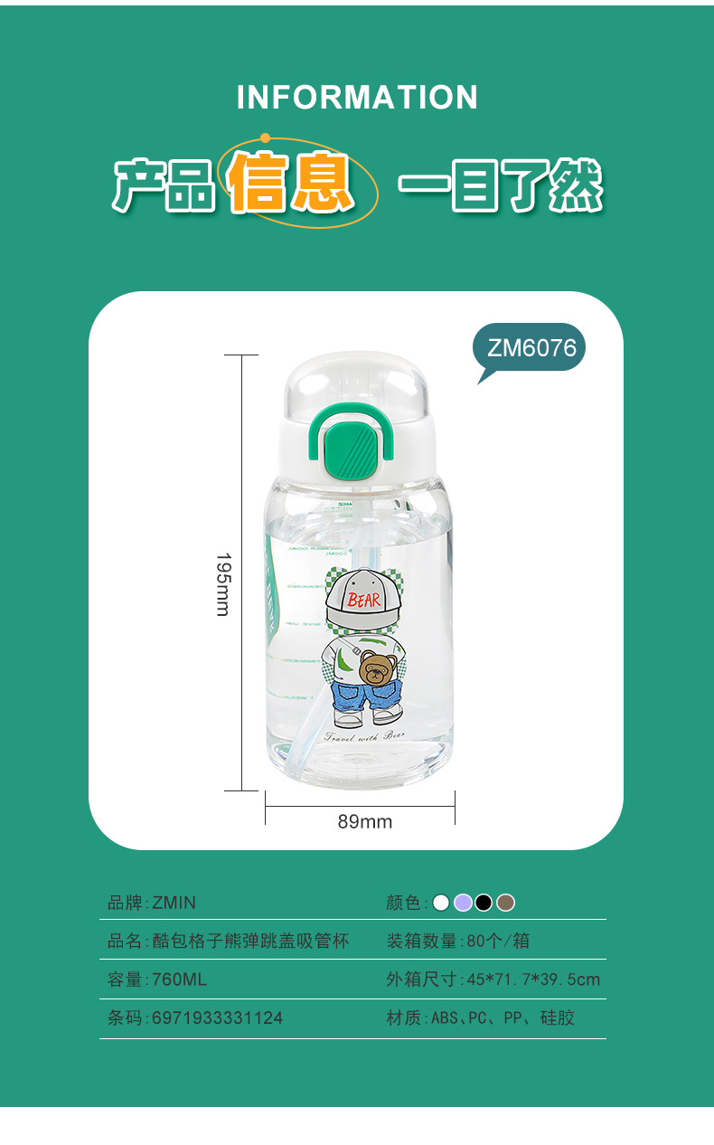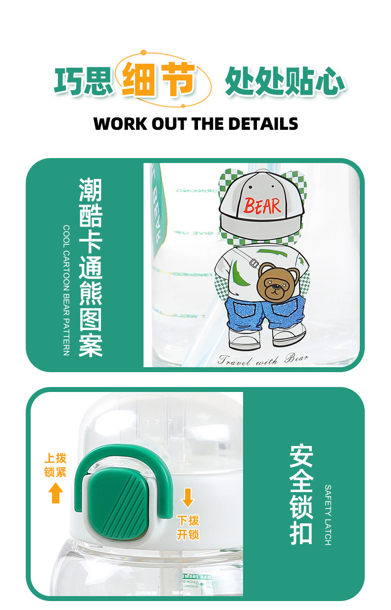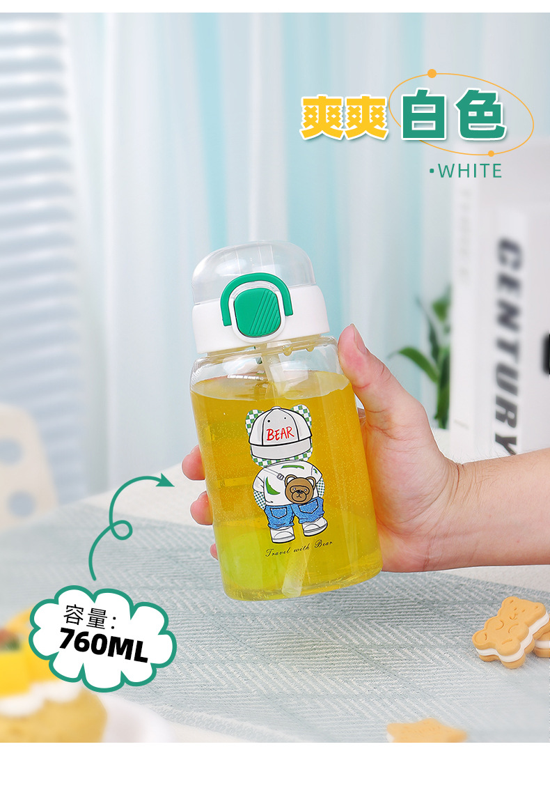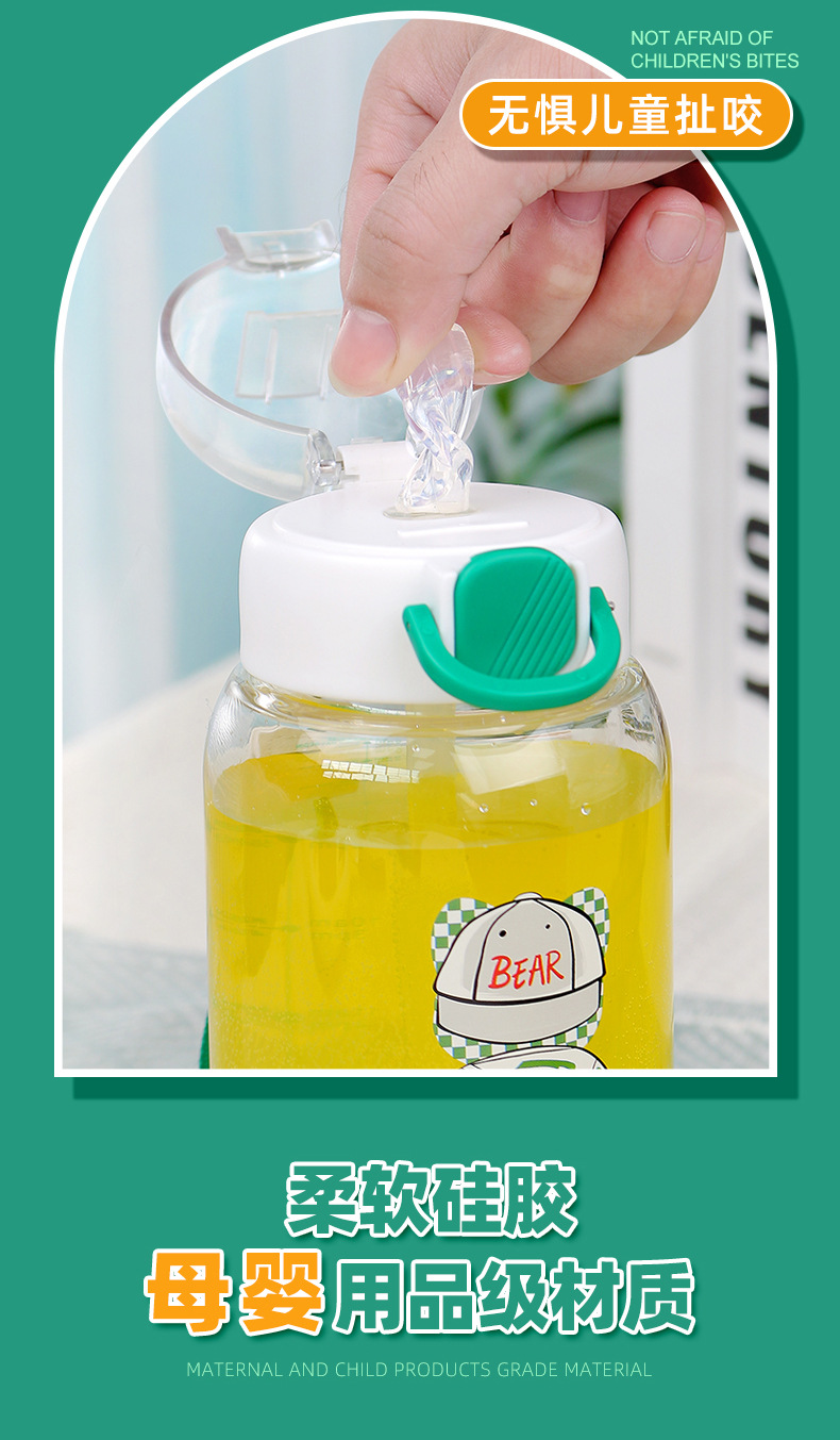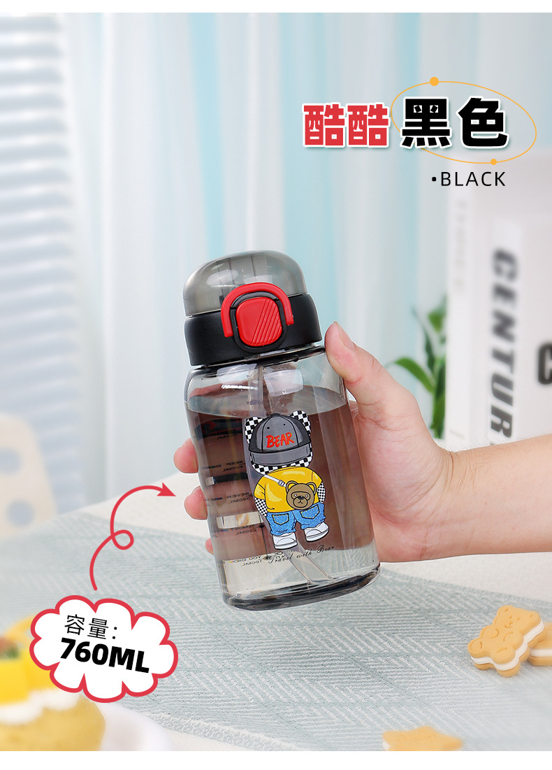 cartoon student bullet cup youth outdoor portable handle big belly straw plastic cup customizable creative straw cup