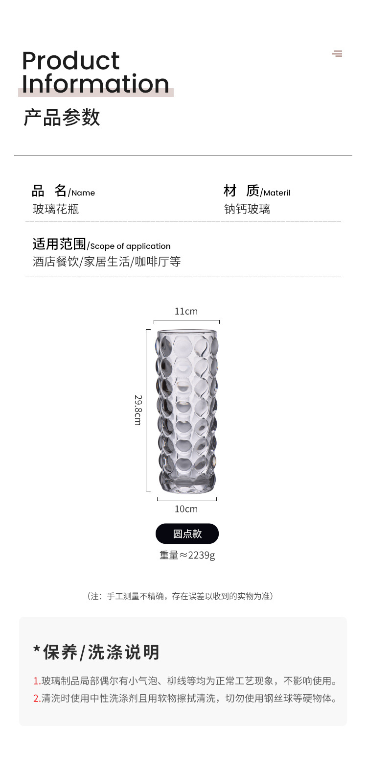 1230 straight round dot vase