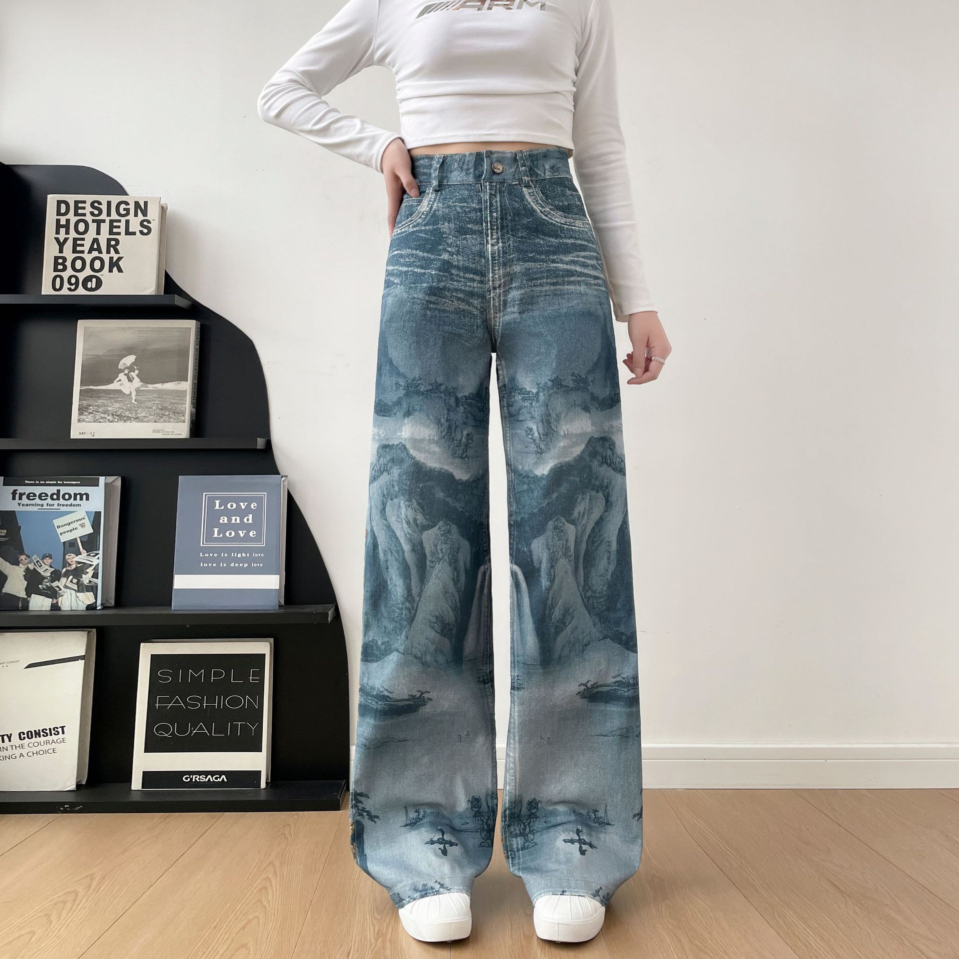 printed pure cotton printed pants autumn cross-border fashion brand american retro pure cotton jeans graphic customization women's