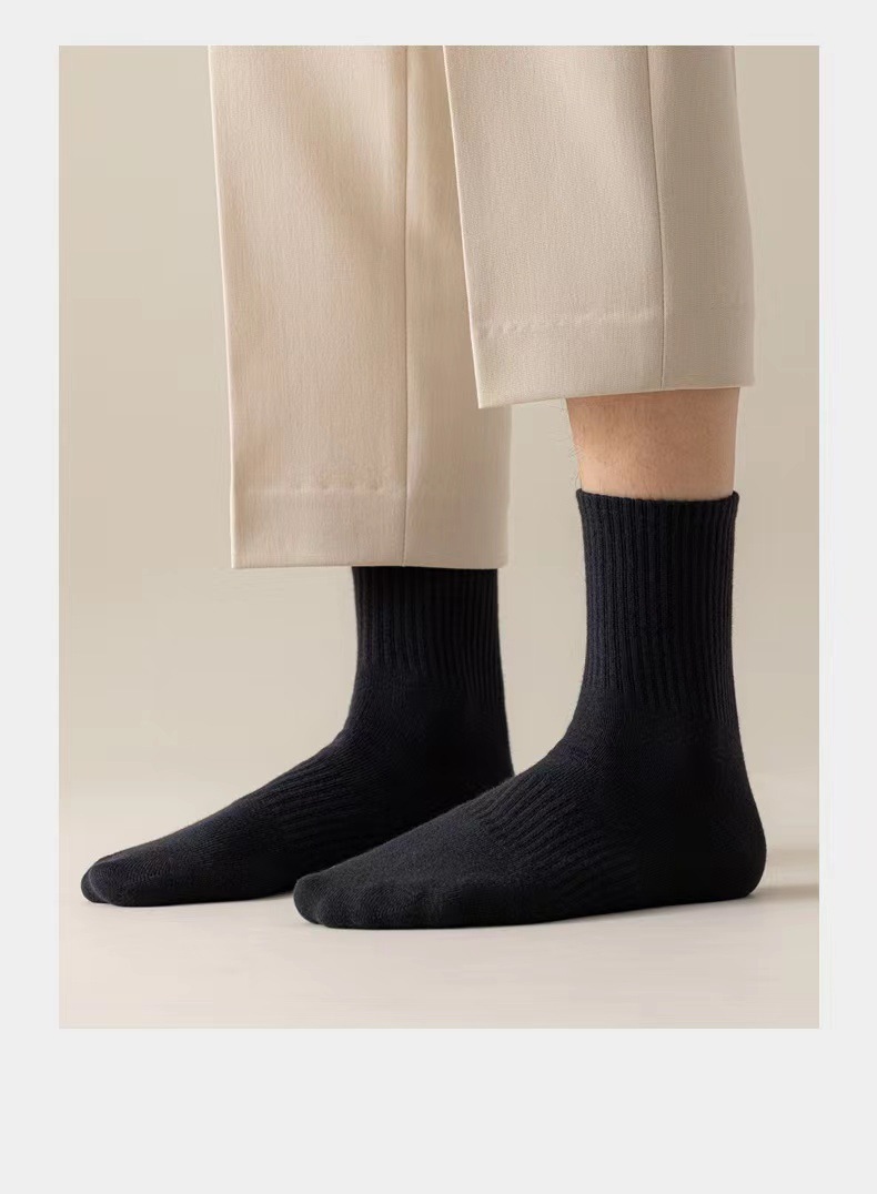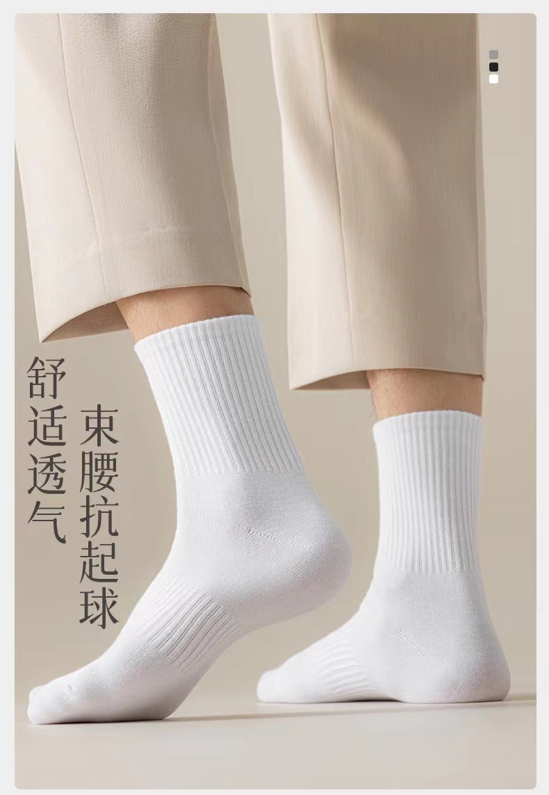 gray mid-calf socks, individually packaged in opp bags.