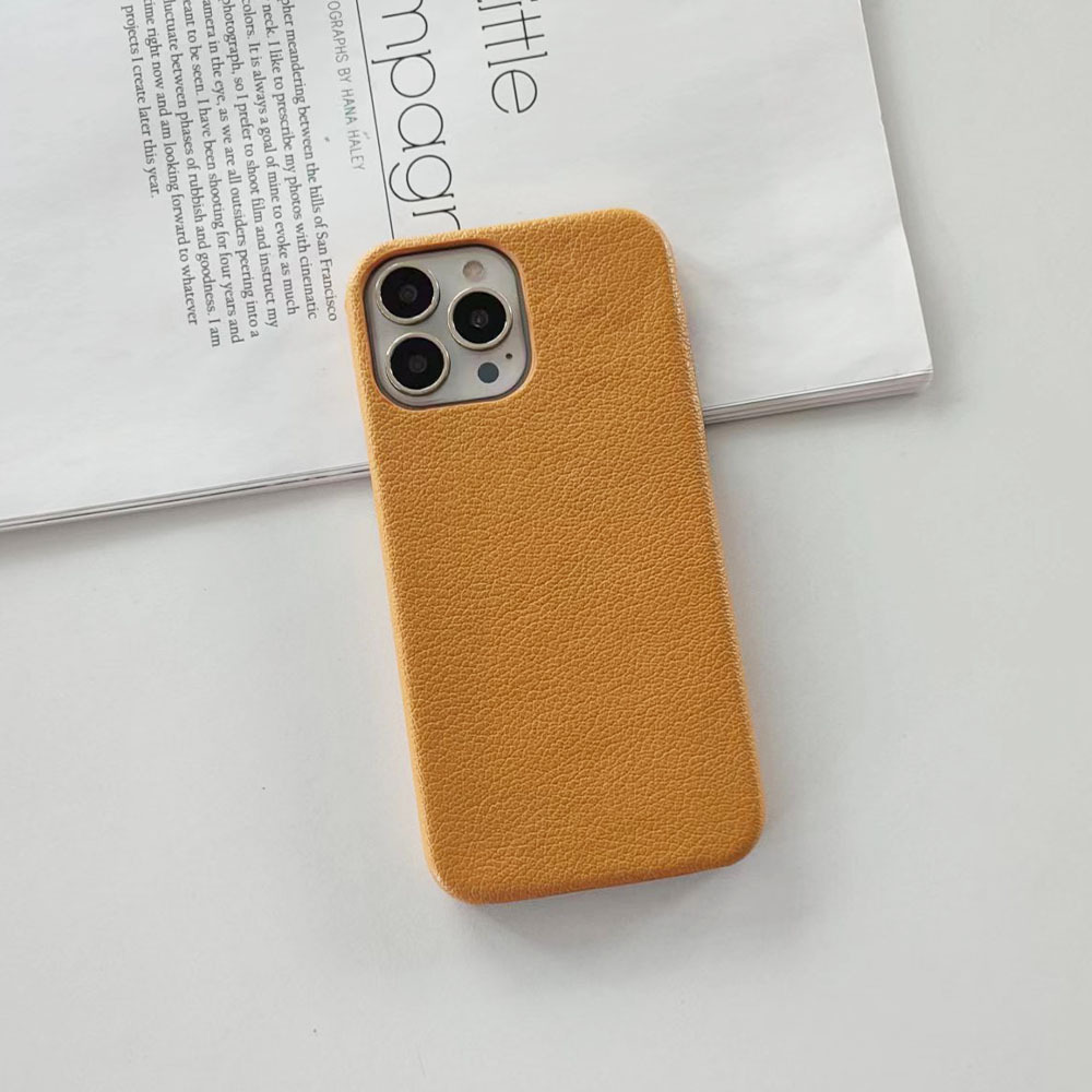 New style iPhone 13 case suitable for Apple mobile phones with sheep skin pattern, pure color, full cover leather, simple and fashionable PC phone case.