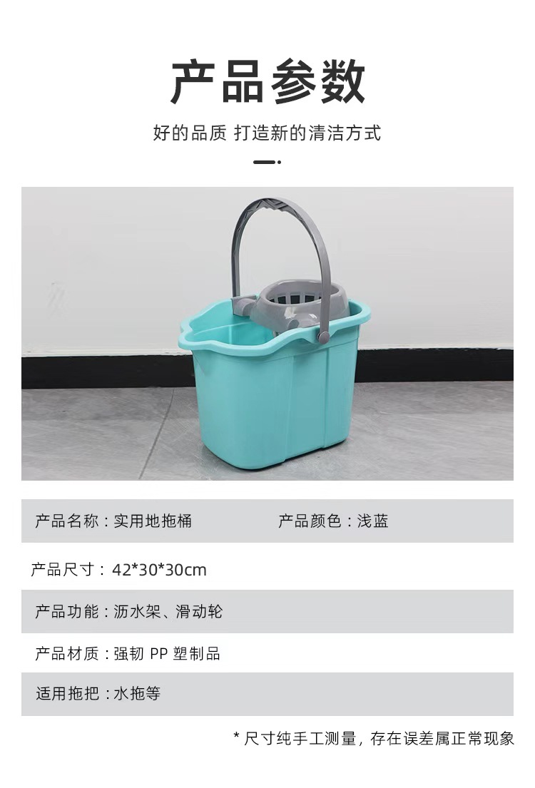 practical floor mop bucket light blue with wheels