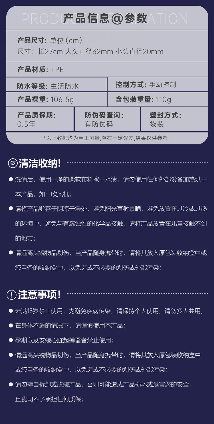 Product dimensions (cm): Overall length: 27cm, Large diameter: 32mm, Small diameter: 20mm