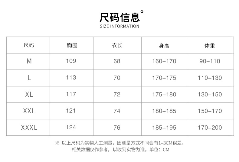 | 3xl(170-200) kg | CN¥ 93.6 | 997 piece available |