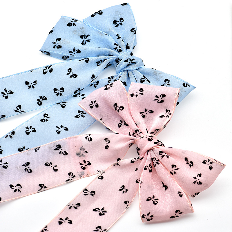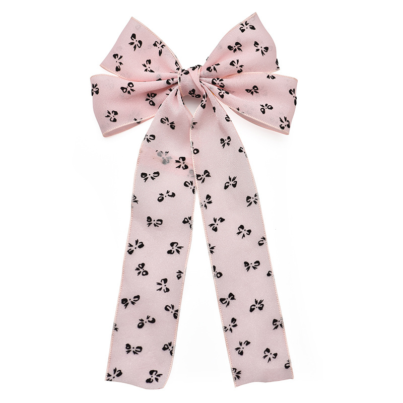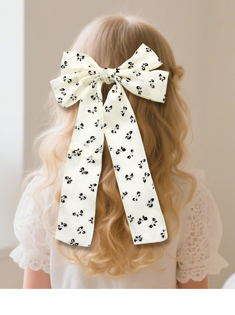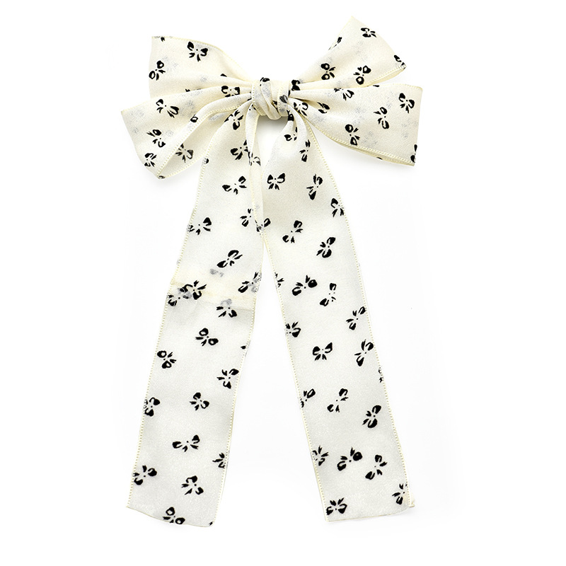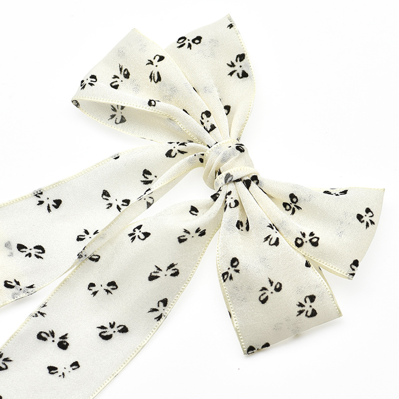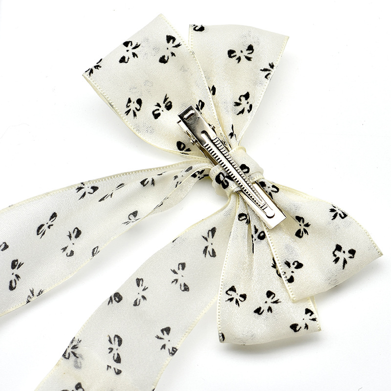 cross-border hot selling fashion printed bow barrettes high sense beige ribbon bowknot barrettes sweet decoration