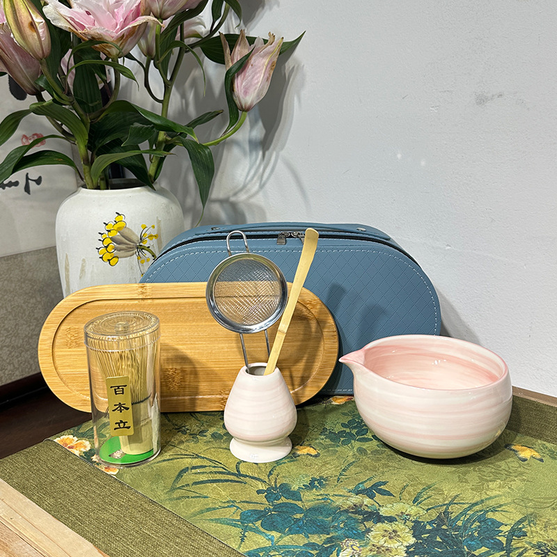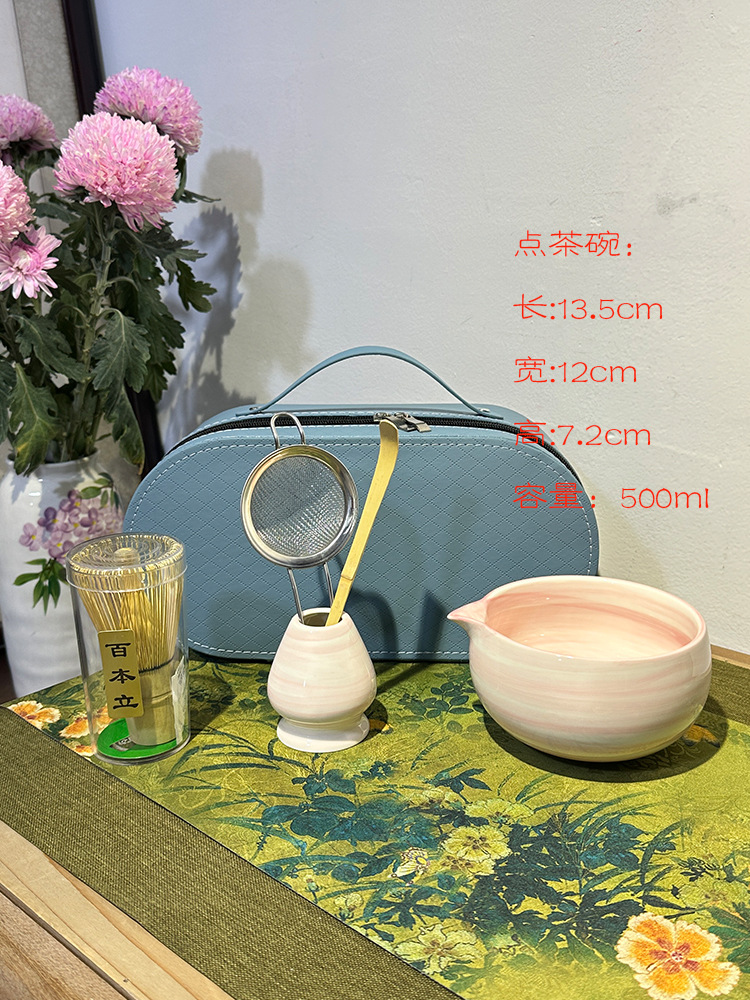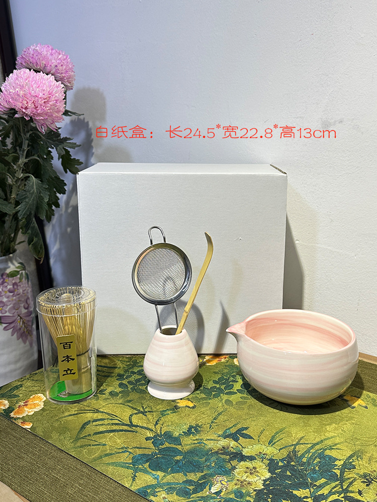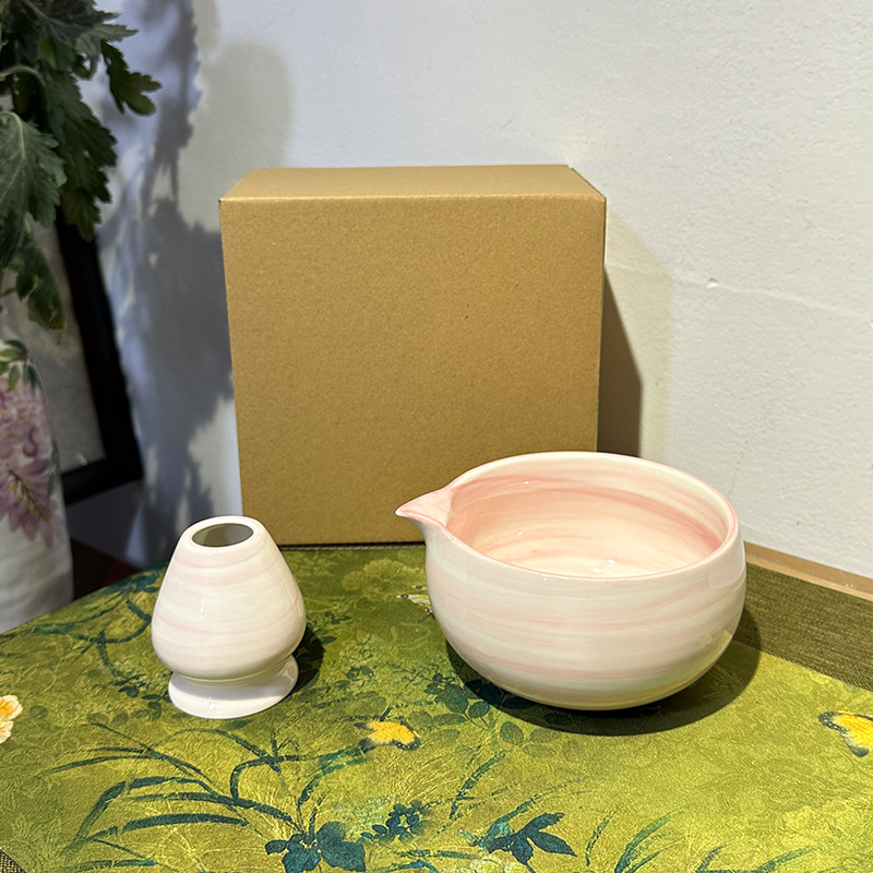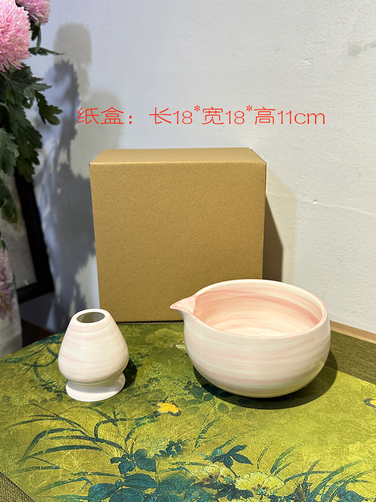 hand color horizontal pattern powder-tea bowl + tea whisk utensils (paper box)