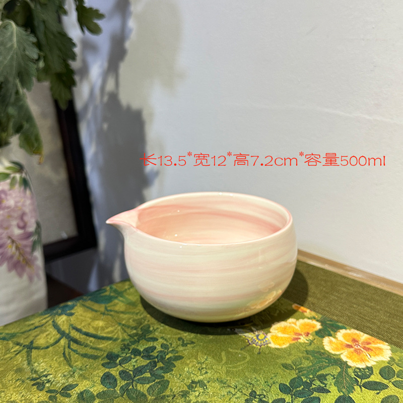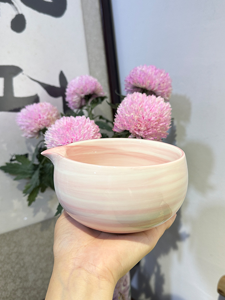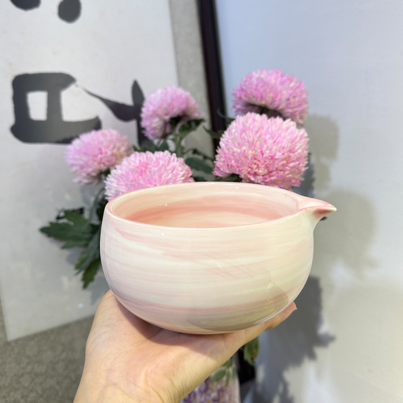 hand color horizontal pattern powder-5-piece tea bowl set (white paper box)