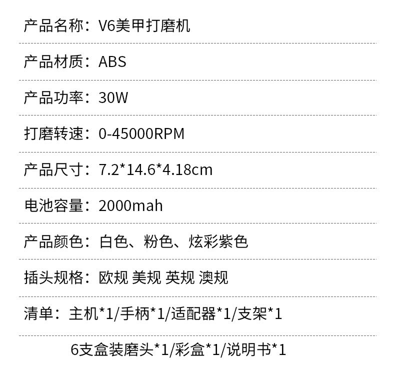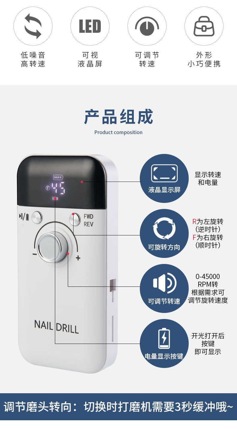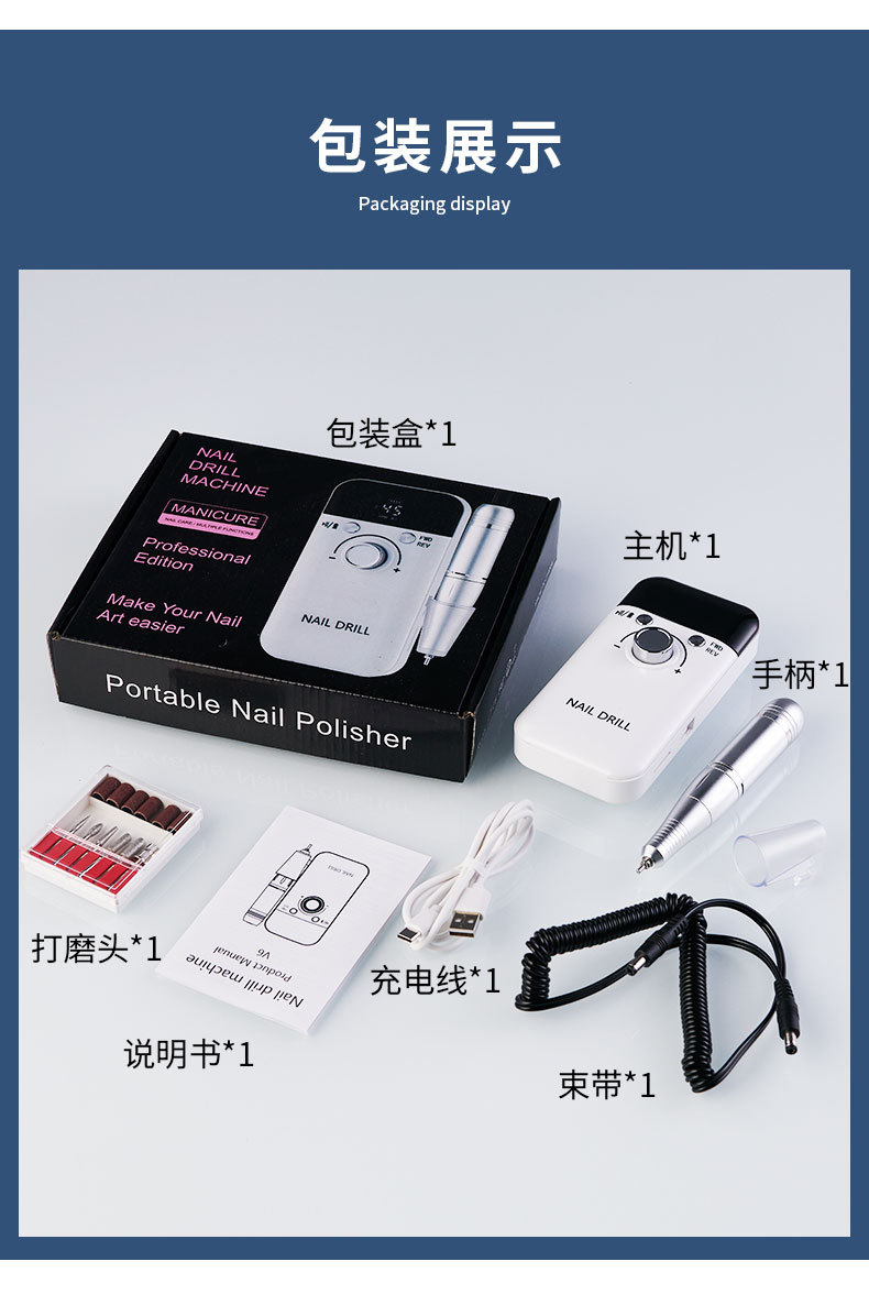 Portable Nail Polishing Machine Electric Sander Special Nail Removal 45000-Turn Dead Skin Removal Nail Piercing Device
