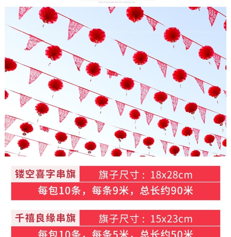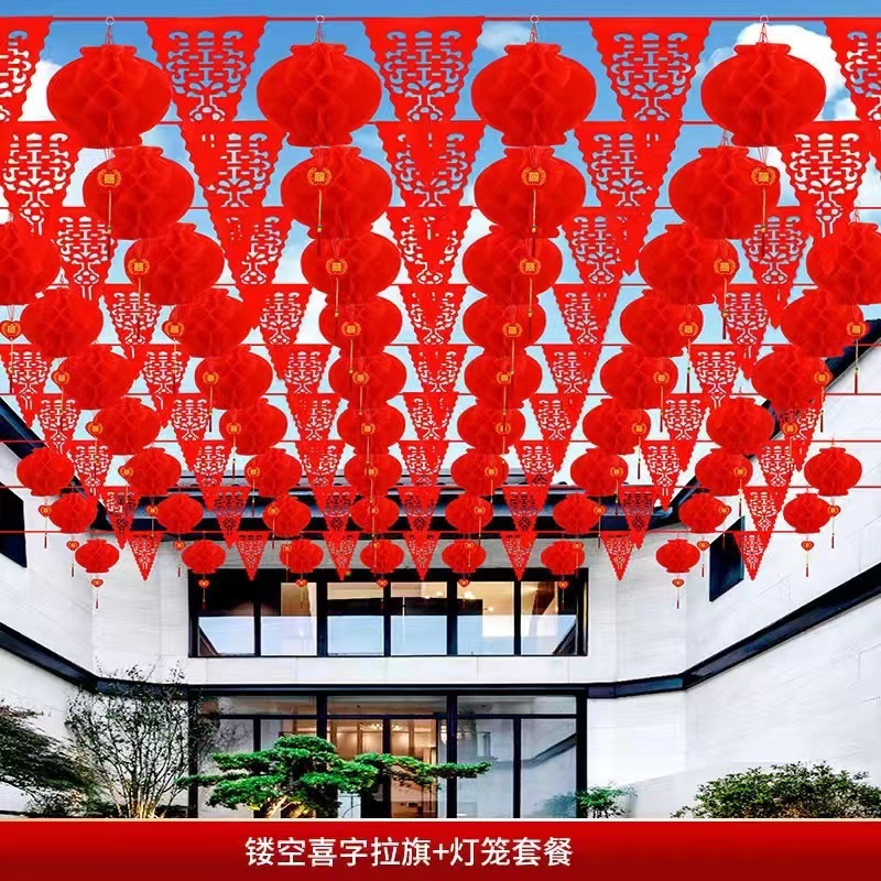 90 m hollow-out xi qi set 150 lantern with xi character