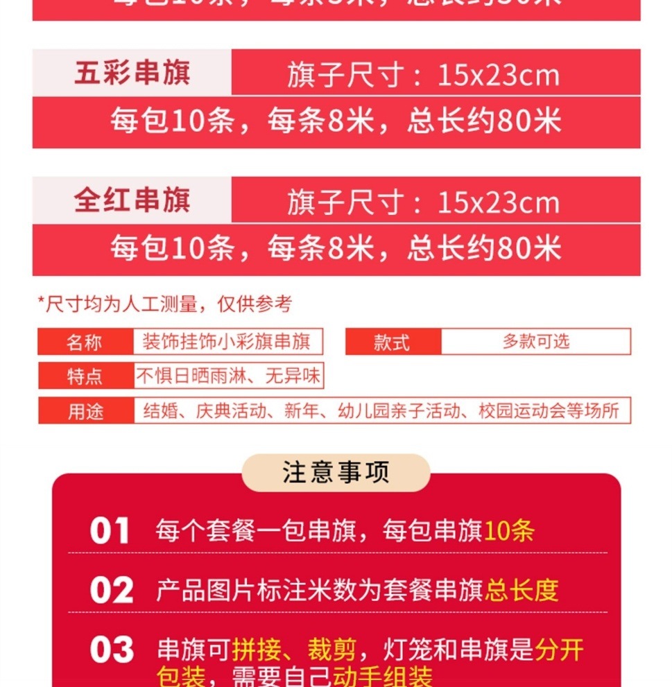 80 m red rope colorful flags set 80 small bell pepper