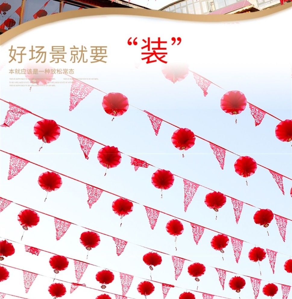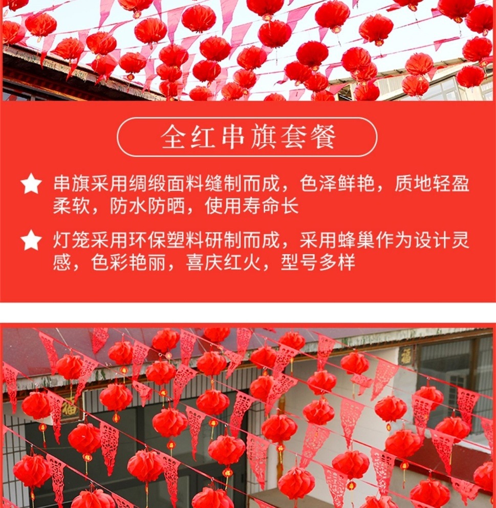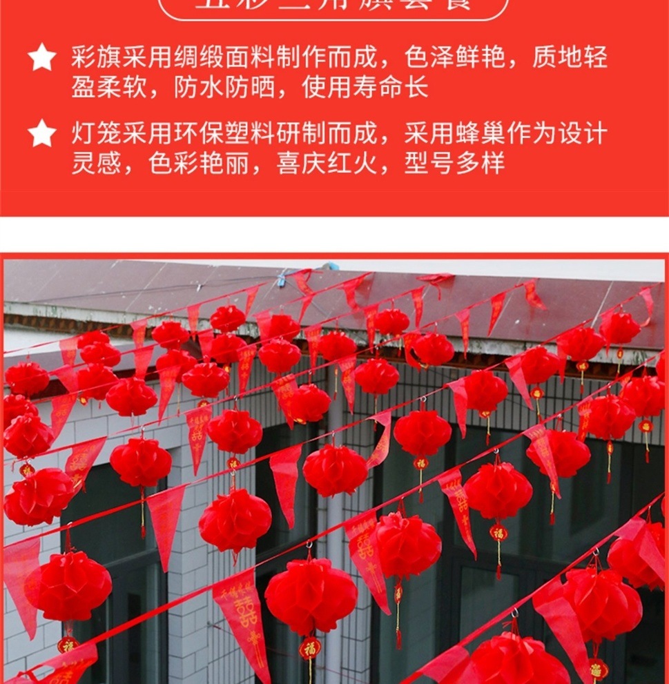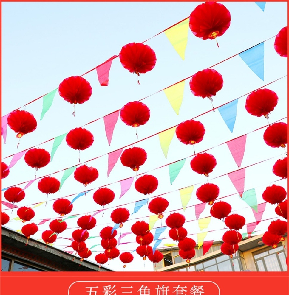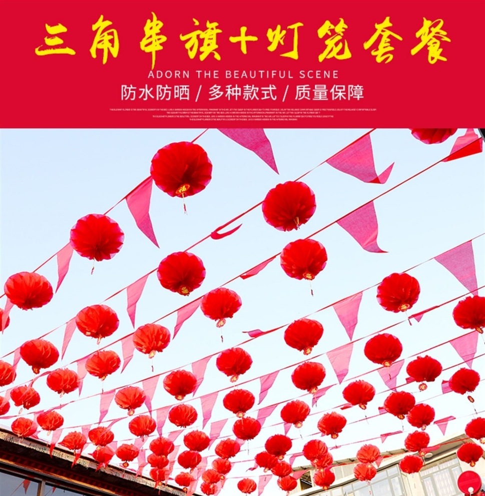 80 m colorful flags with 100 large lanterns