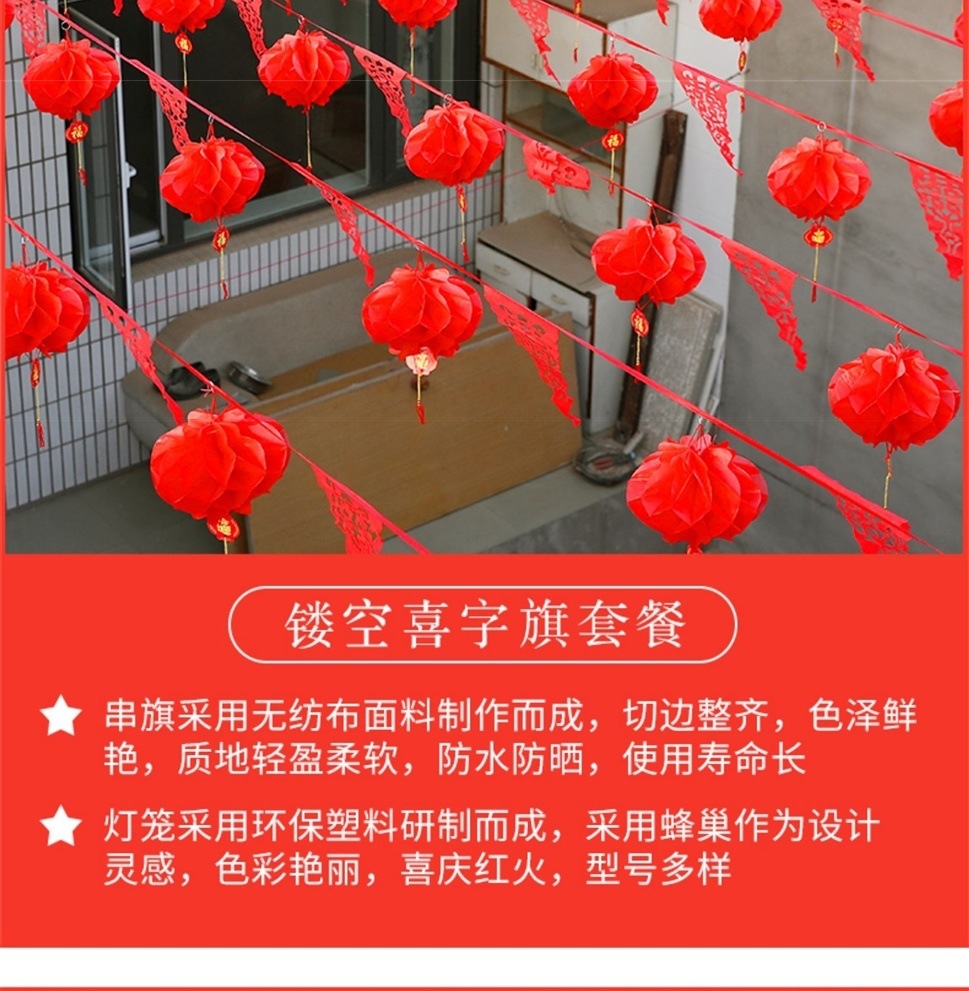90 m hollow-out xi qi set 80 lantern with xi character
