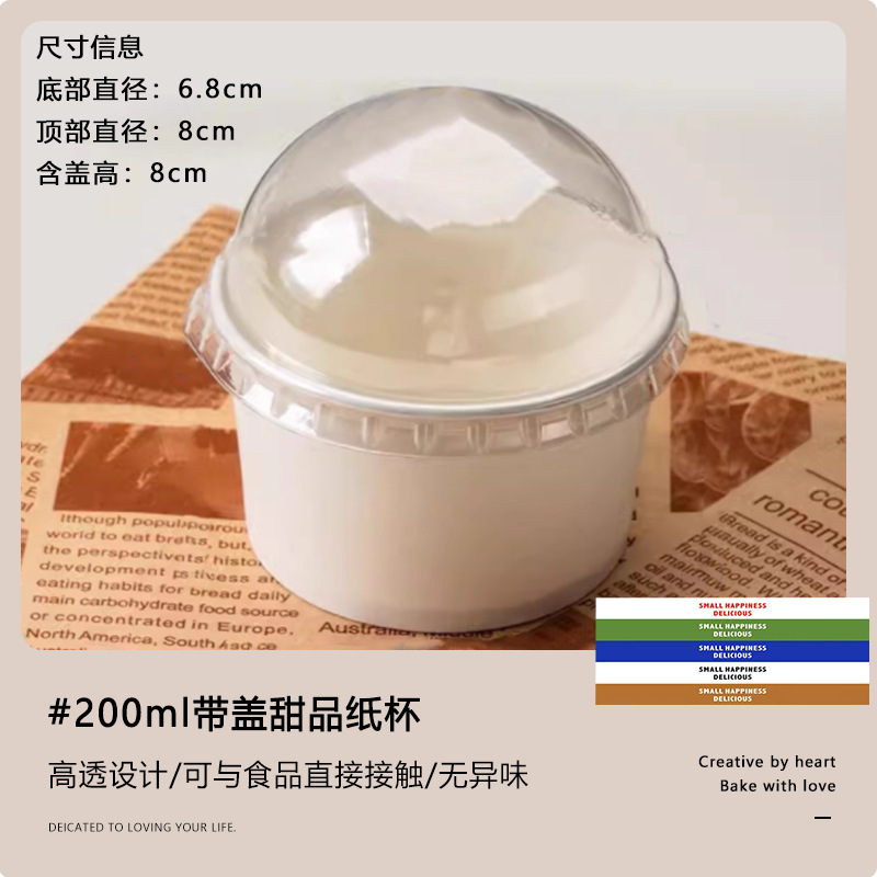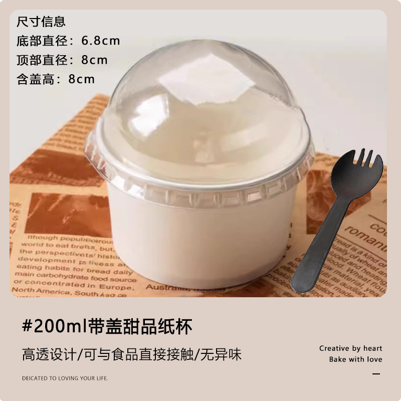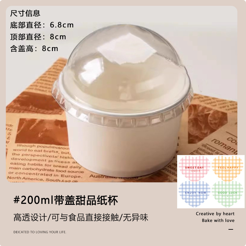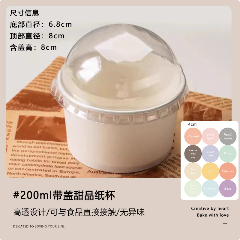 thickened 200ml paper cup [with lid] + english five-color sticker + spork; order by multiple of 50