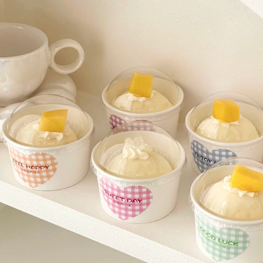 thickened 200ml paper cup [with lid] + flower sticker + spork; order by multiple of 50