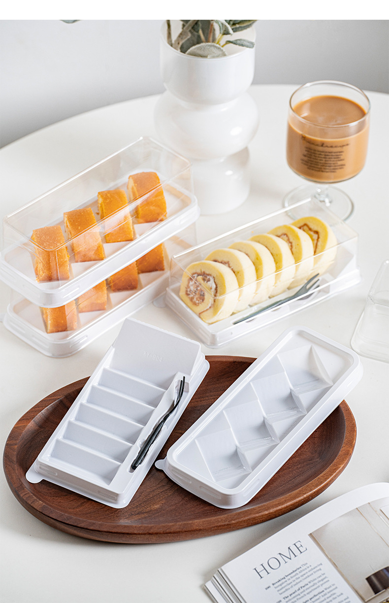 six packing boxes (including forks); set