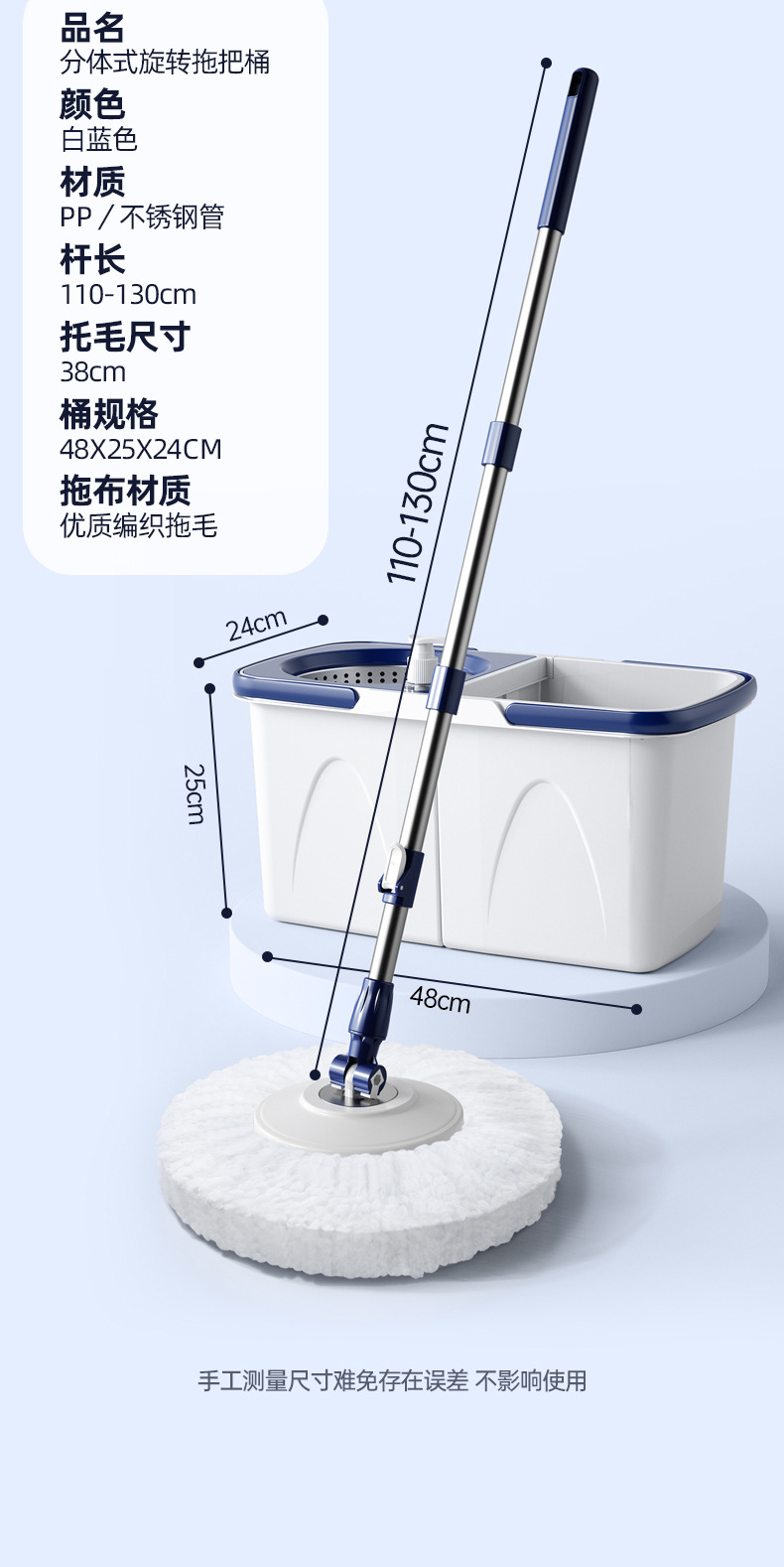 double drive detachable folding rotating mop lazy mopping mop bucket hand wash-free household mops cleaning gadget