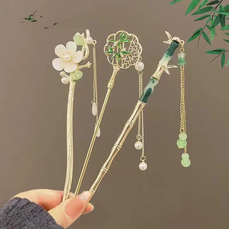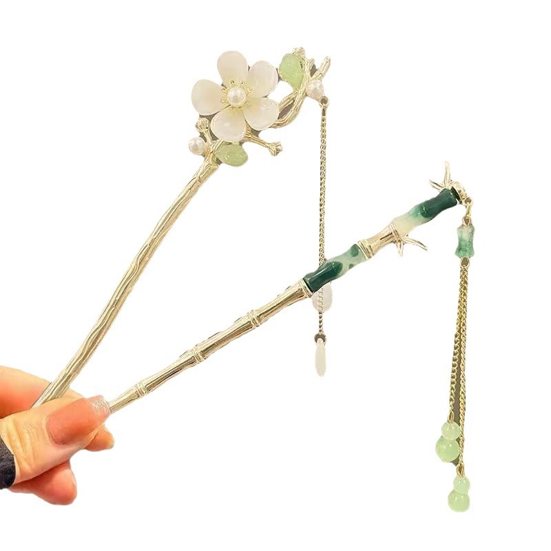 magnolia + green bamboo + round fan