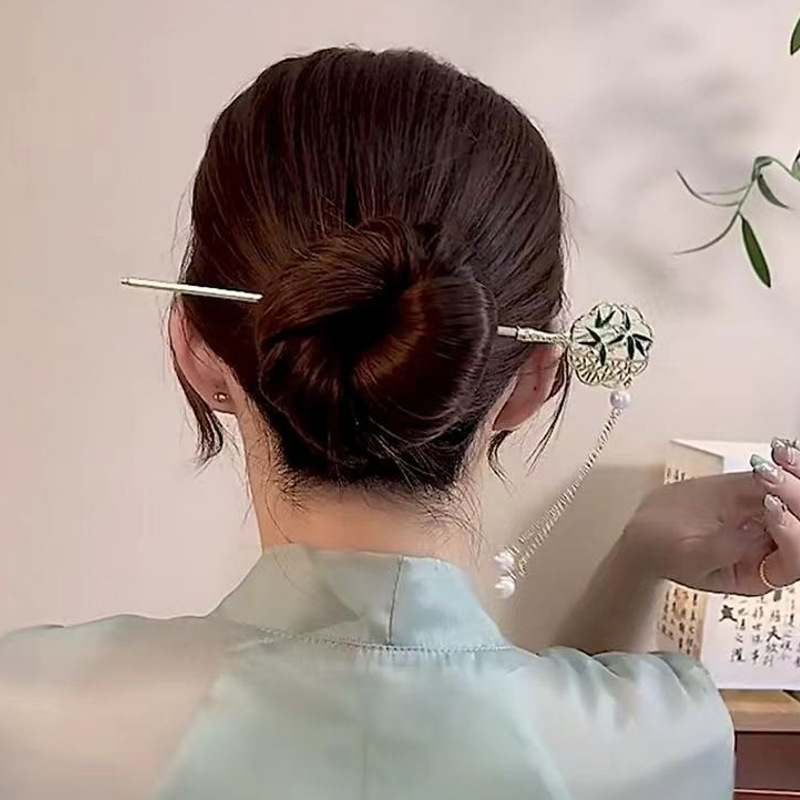 round fan + green bamboo
