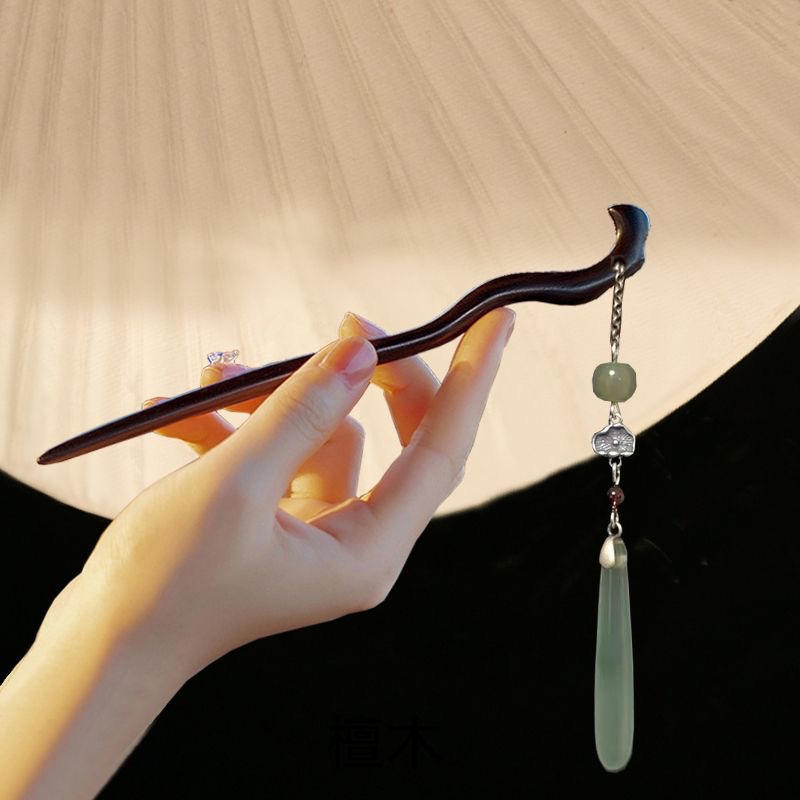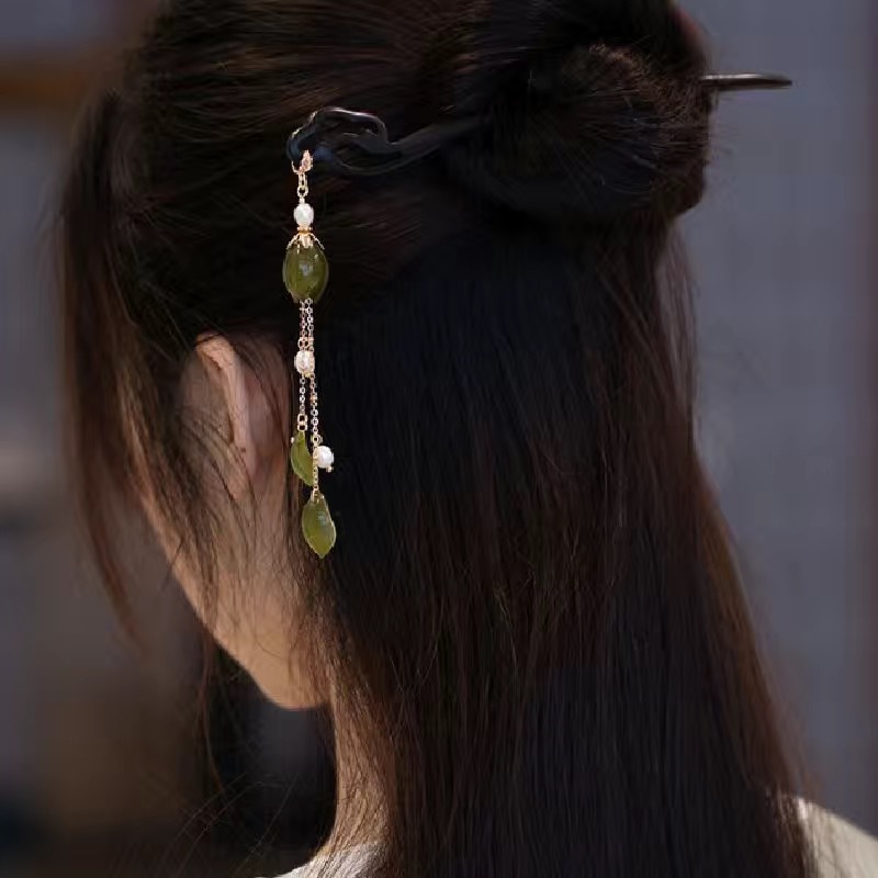 28# jasper lotus petals tassel hairpin