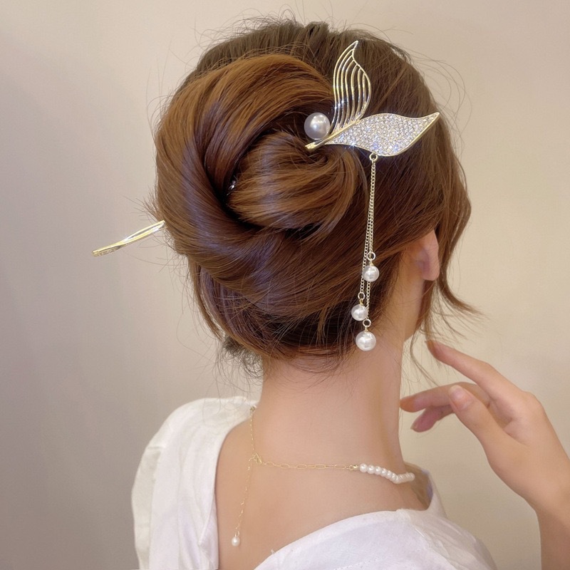 40# pearl fishtail tassel hairpin