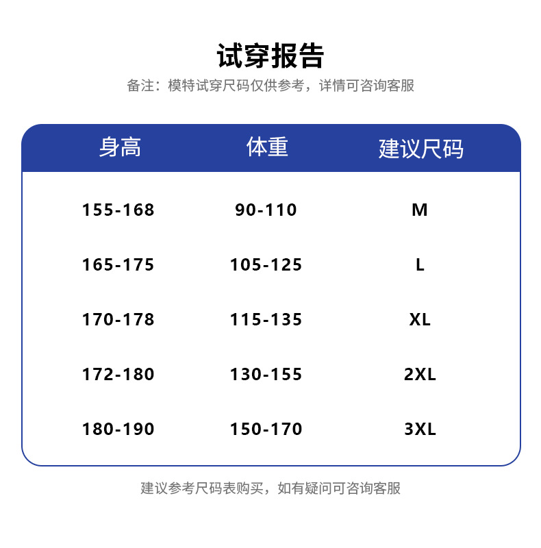 | 3xl recommended size (72.50 kg-85.00 kg | CN¥ 0.0 | 2677 piece available |