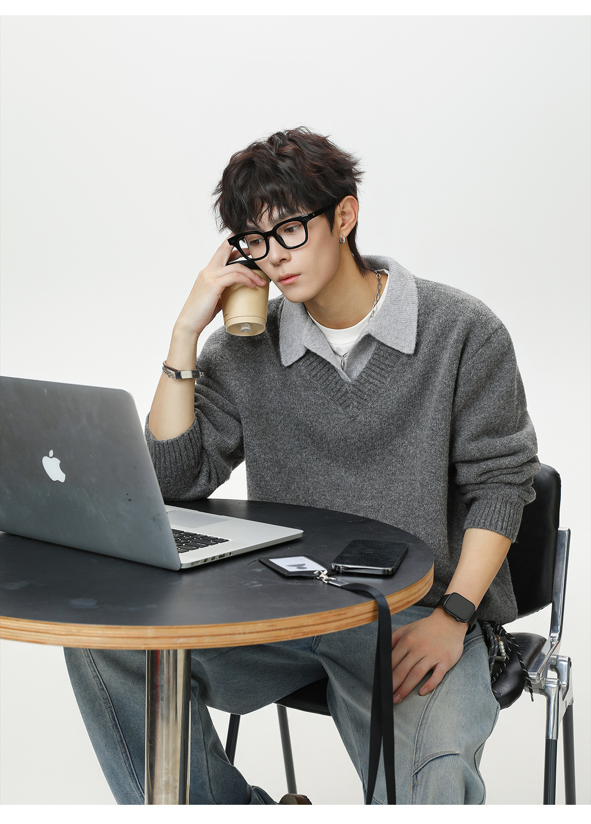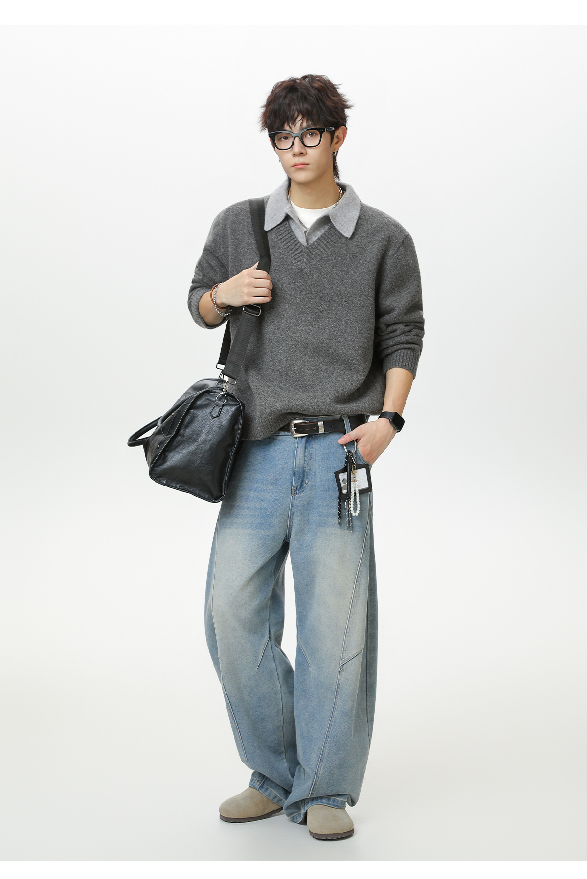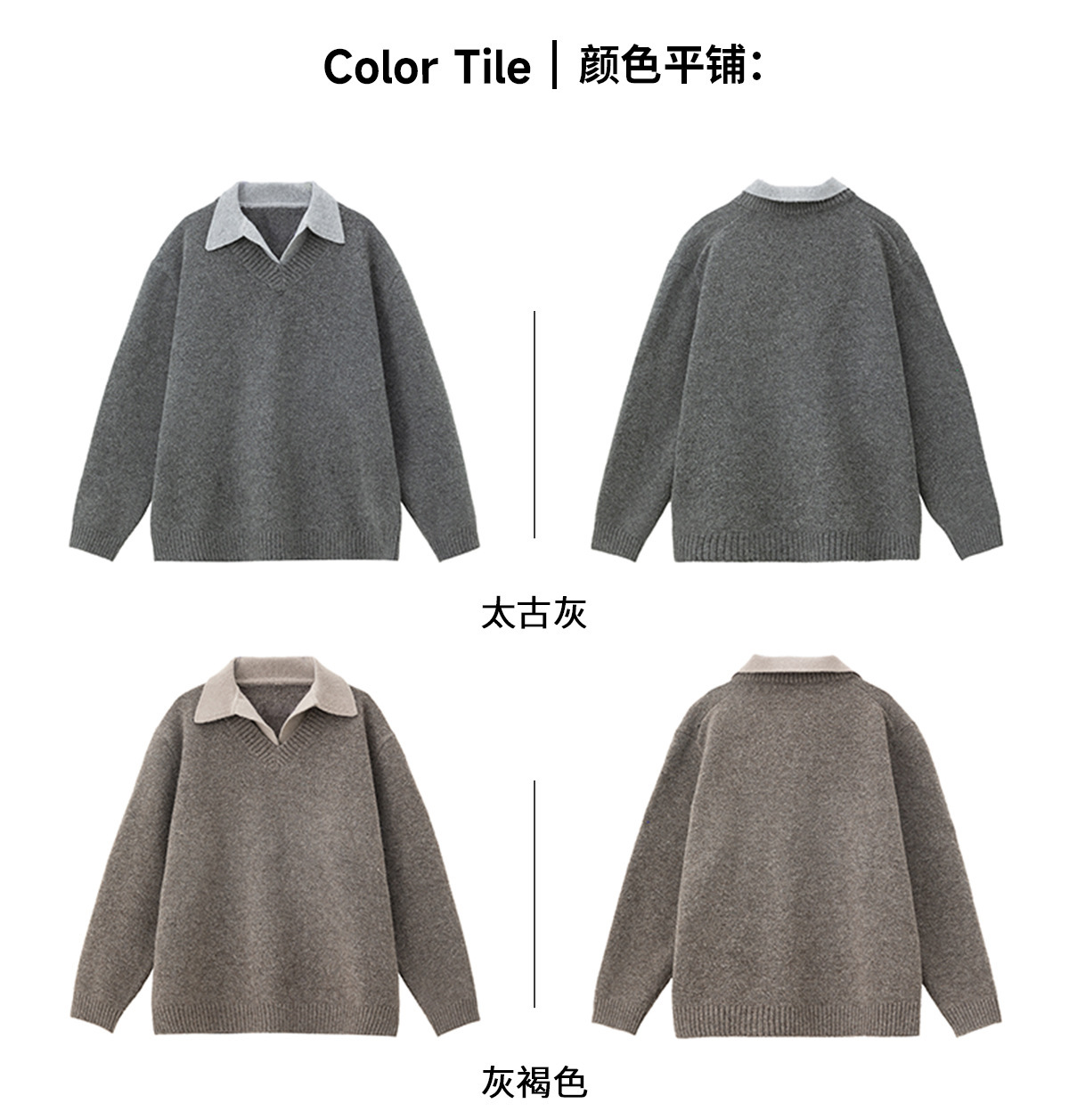 old money style texture fake two-piece v-neck sweater men's autumn and winter new retro lapels sweater warm coat
