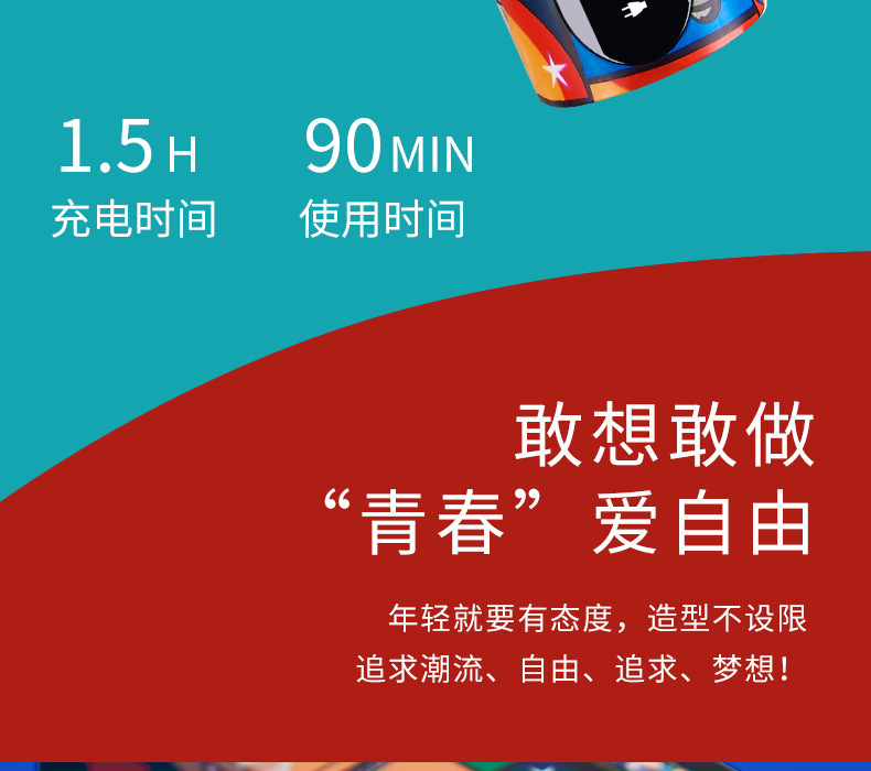 Charging time: 2 hours Usage time: 99 minutes