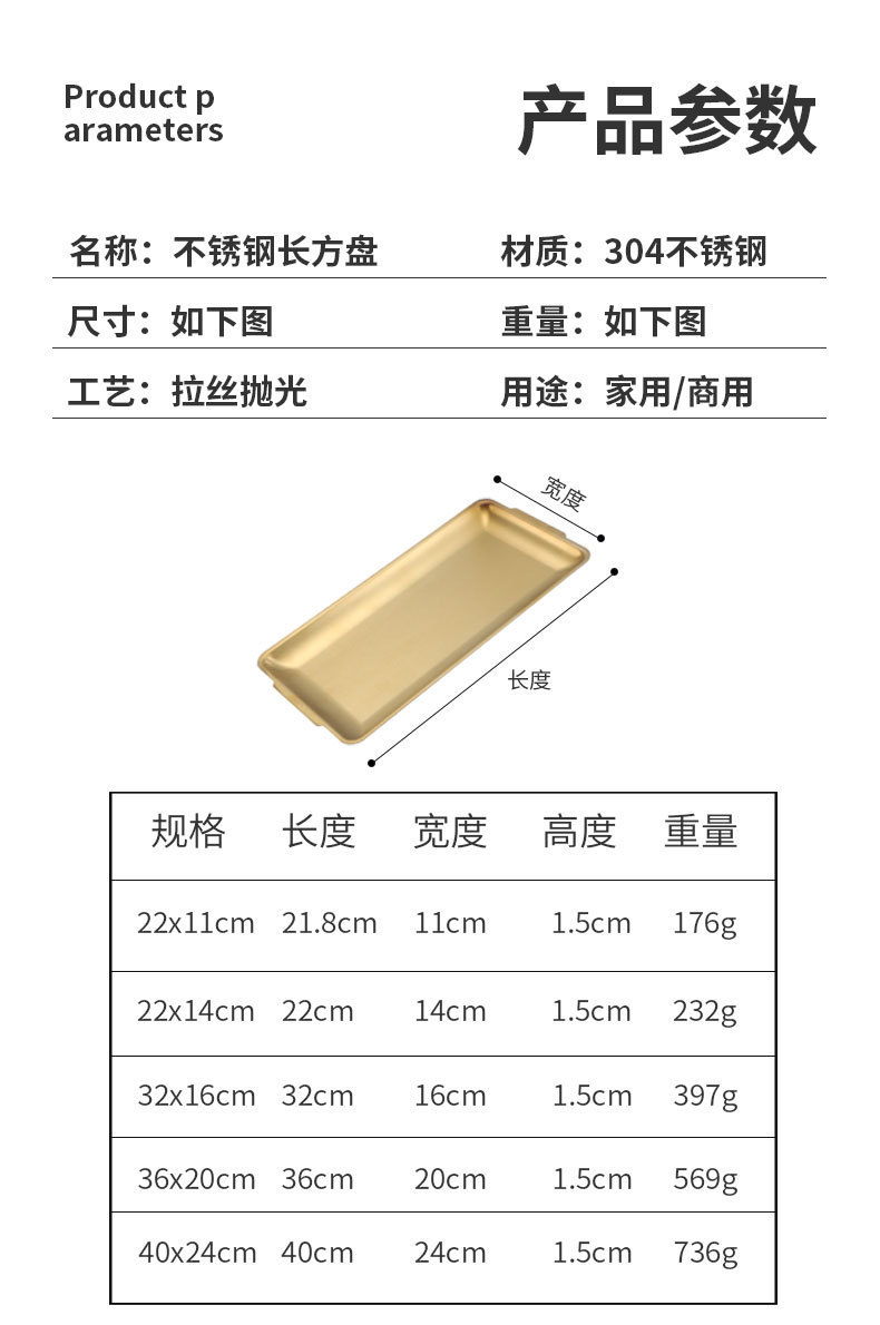 rectangular plate 36*20(304 gold)