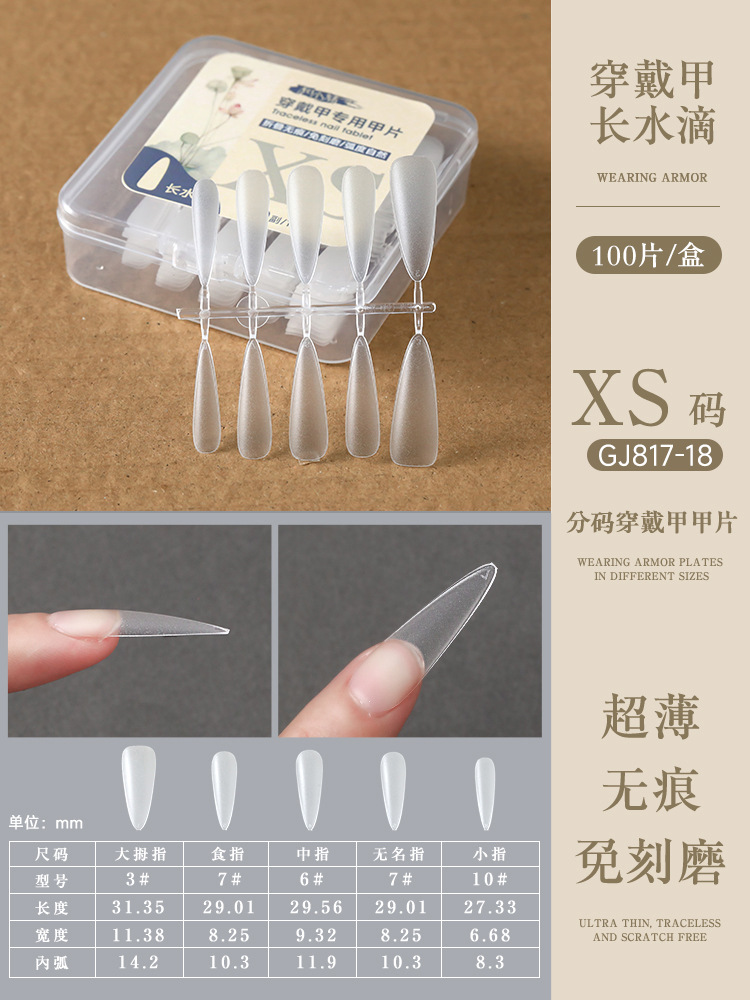 long water drops nail tip-size xs (10 pairs/100 pieces in a box)