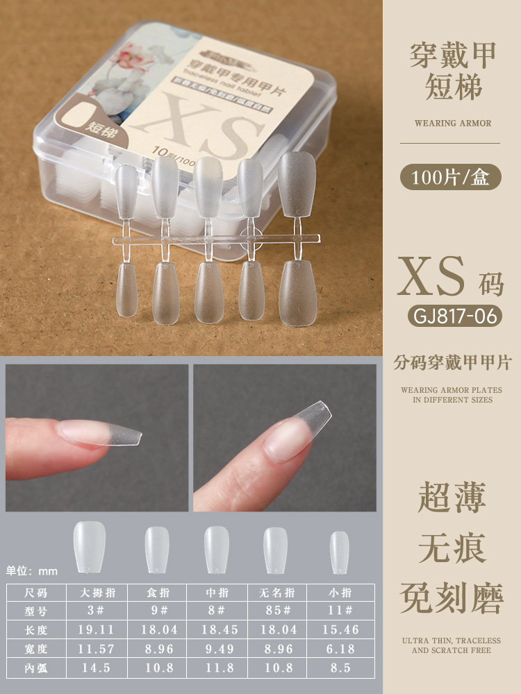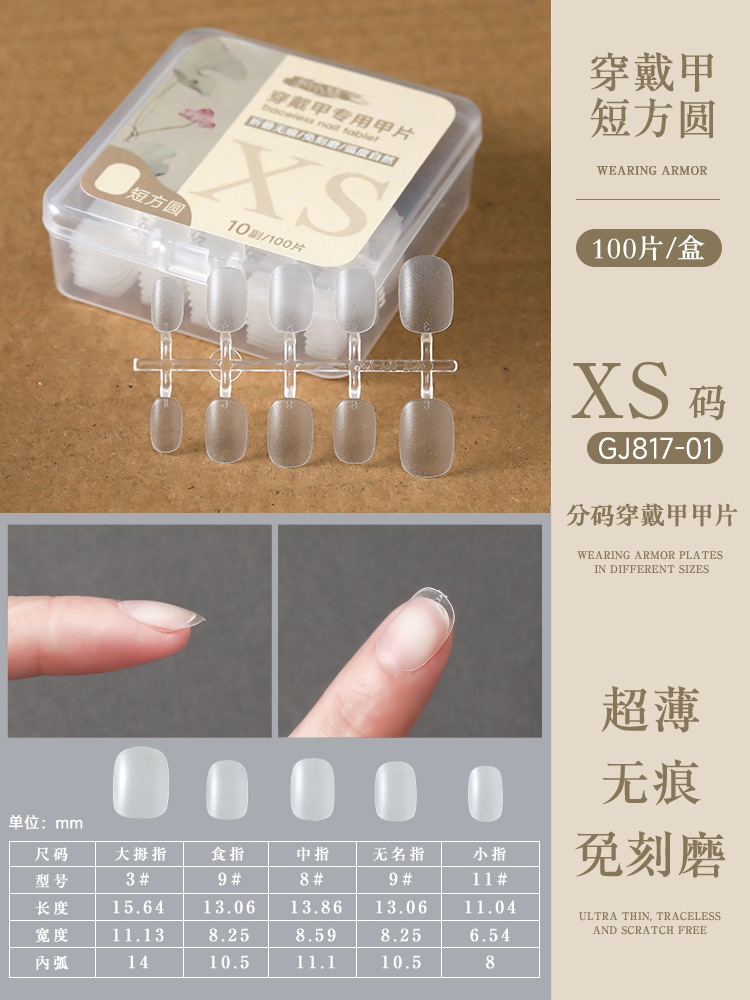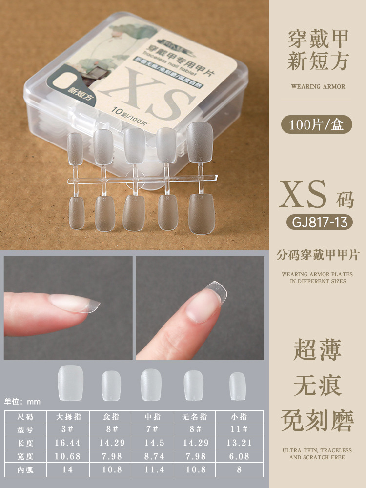 short square round nail tip-size xs (boxed 10 pairs/100 pieces)