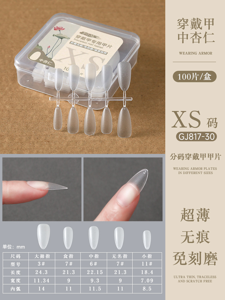 medium almond nail tip-size xs (10 pairs/100 pieces in a box)