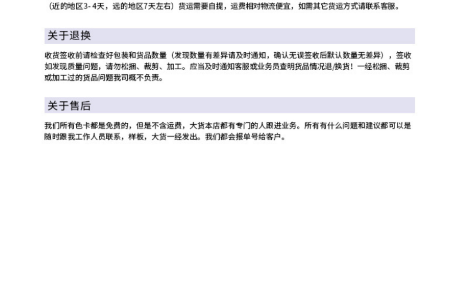 color card less than 1*5 meters (yuan/meter)