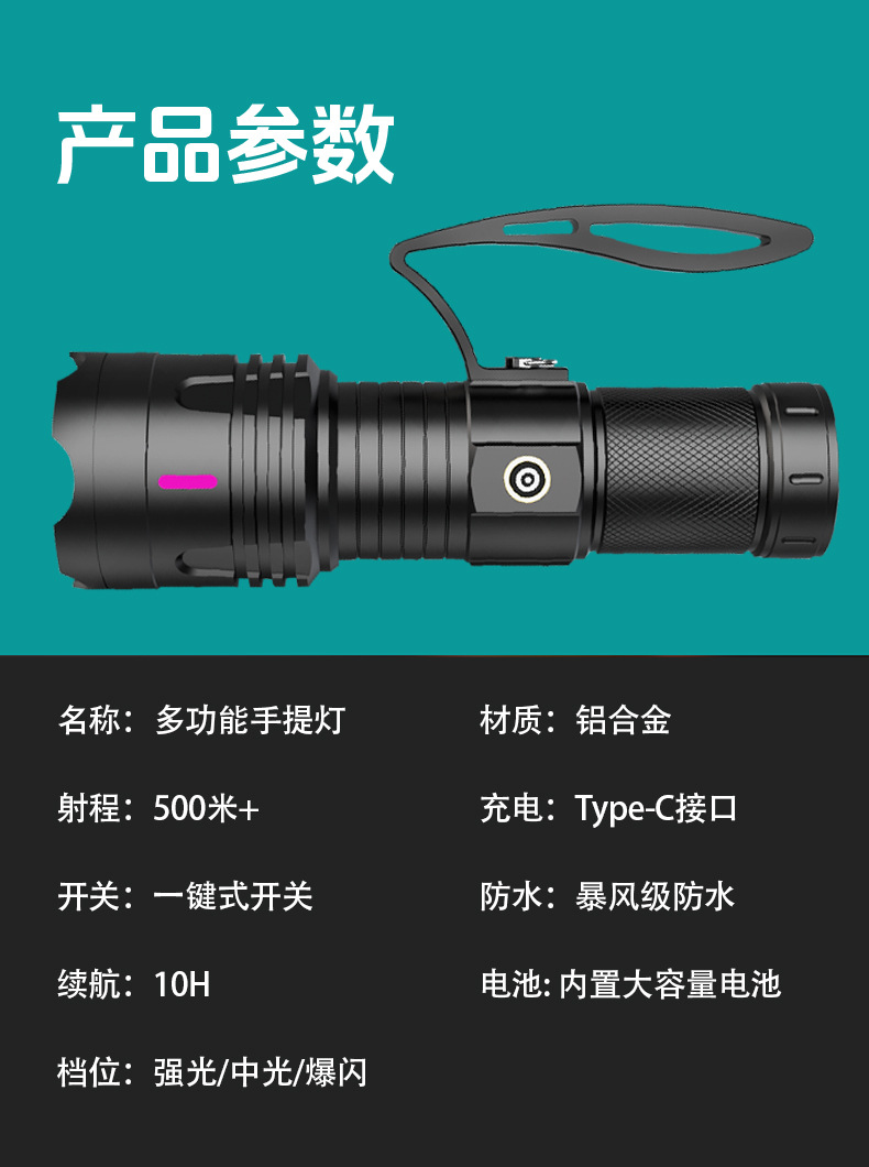 colorful fluorescent 30w white laser portable torch