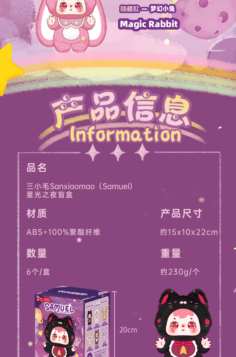 MR1084 Three Little Hair (Samuel) Starry Night Plush Hangtag Blind Box |