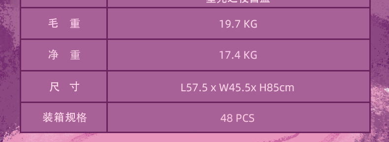 Product: 15*10*22cm Small box: 14.5*13.5*20cm End Box44*27.5*20.5cm Weight: 230g |