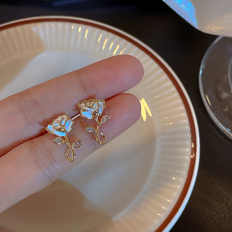 53# white rose earrings-gold