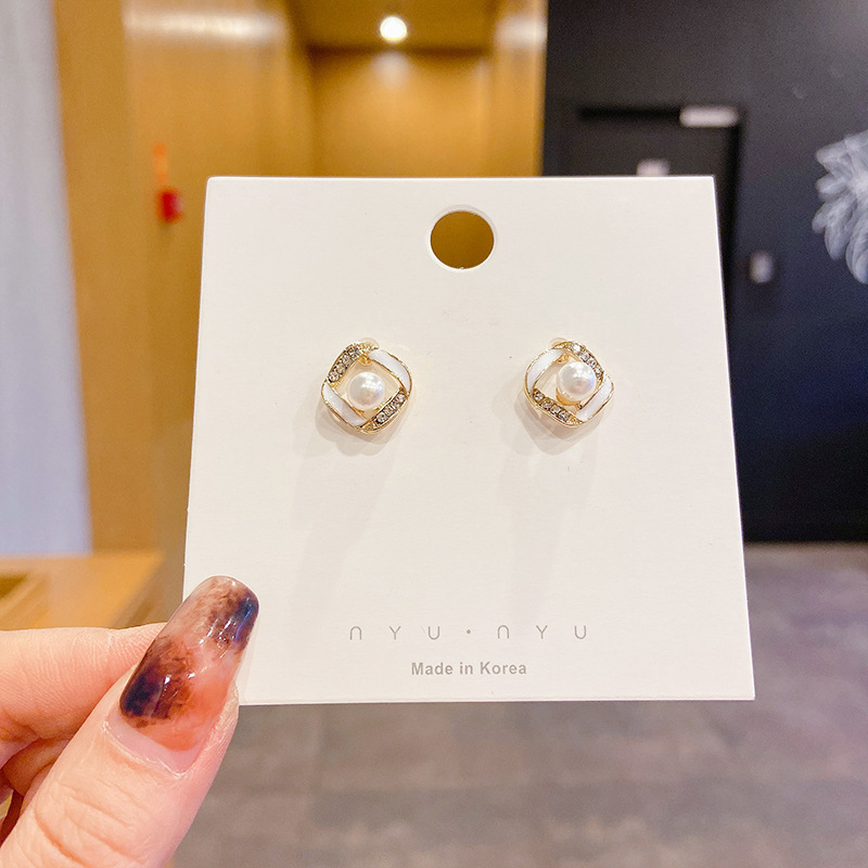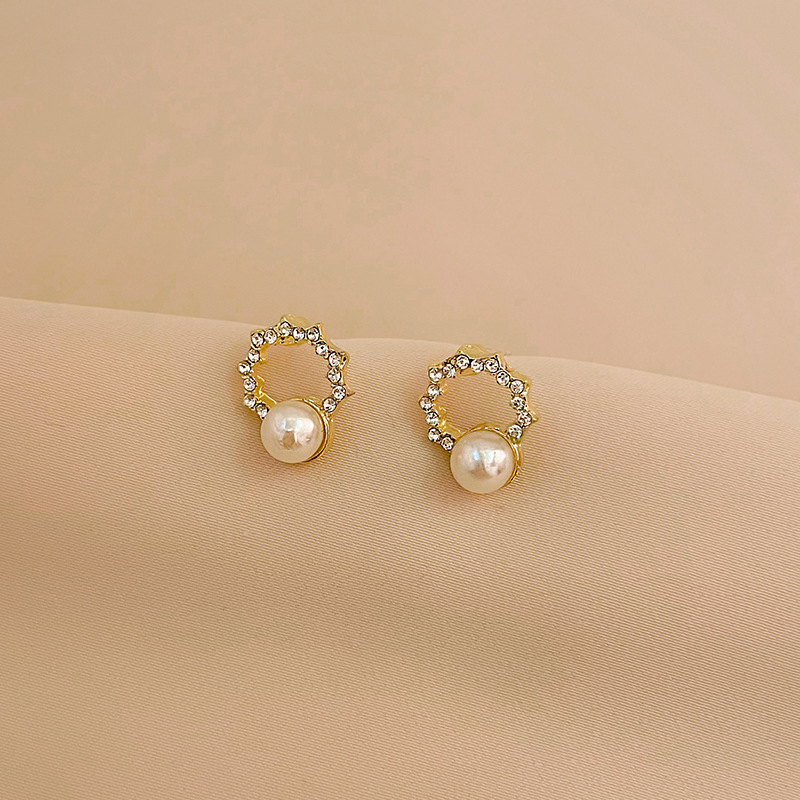 1# ring rhinestone pearl earrings-silver needle