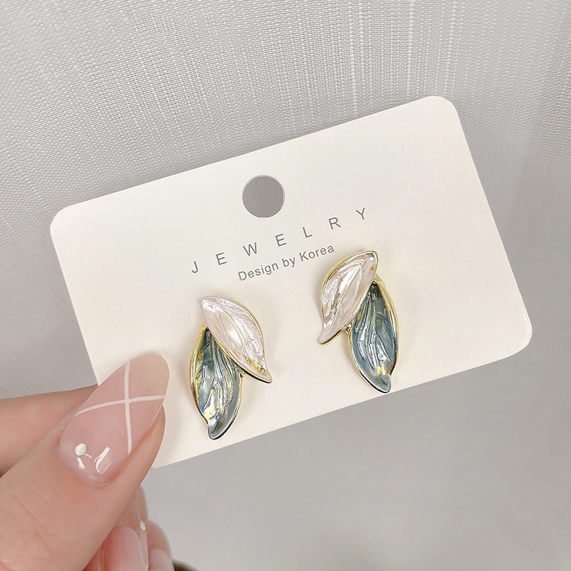 1# leaf-shaped earring-silver needle