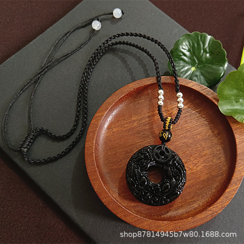 obsidian double pixiu peace buckle (with white metal beads black rope)