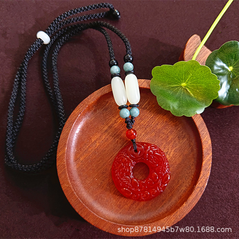 carnelian double pixiu safety buckle pendant (with emerald beads purplish red rope)