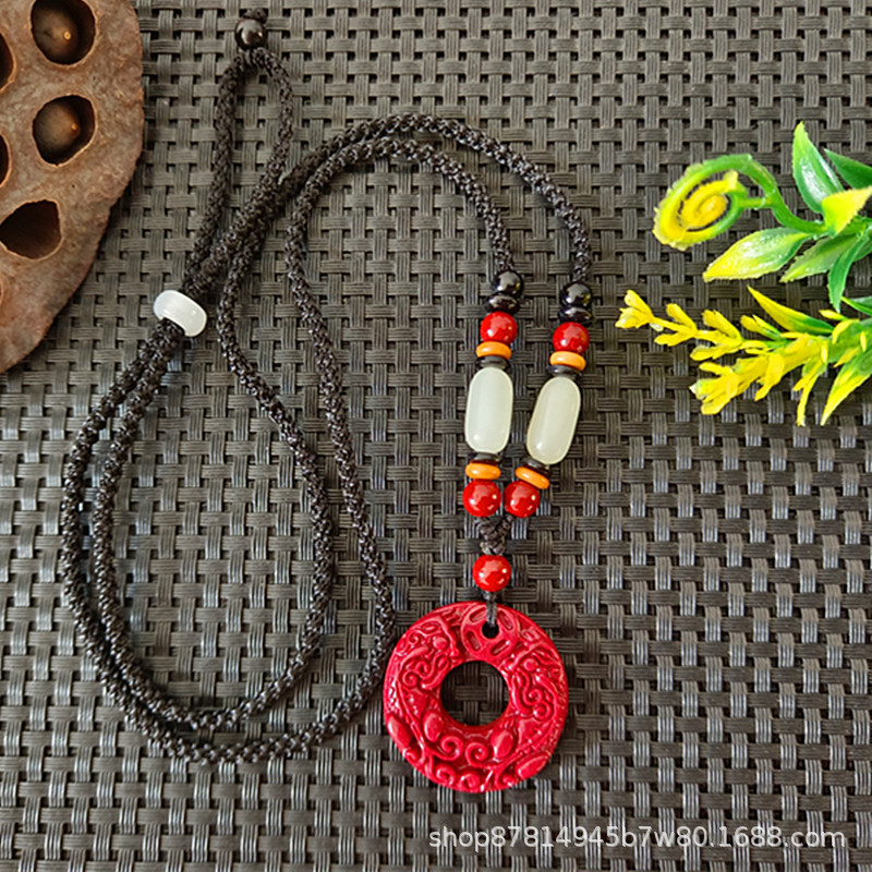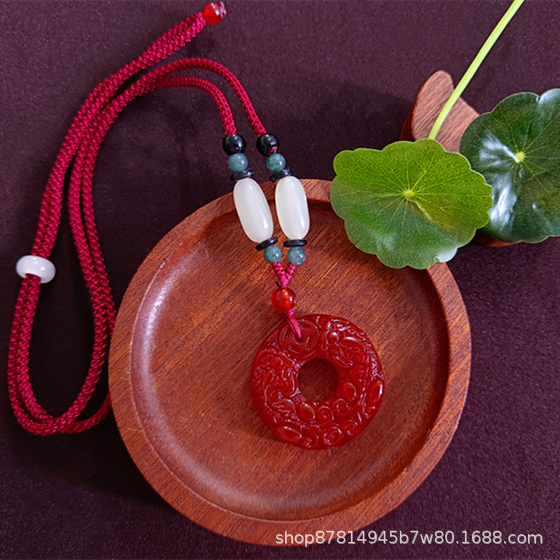 high content cinnabar double pixiu safety buckle pendant (with imitation hetian jade rope)