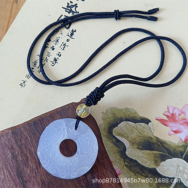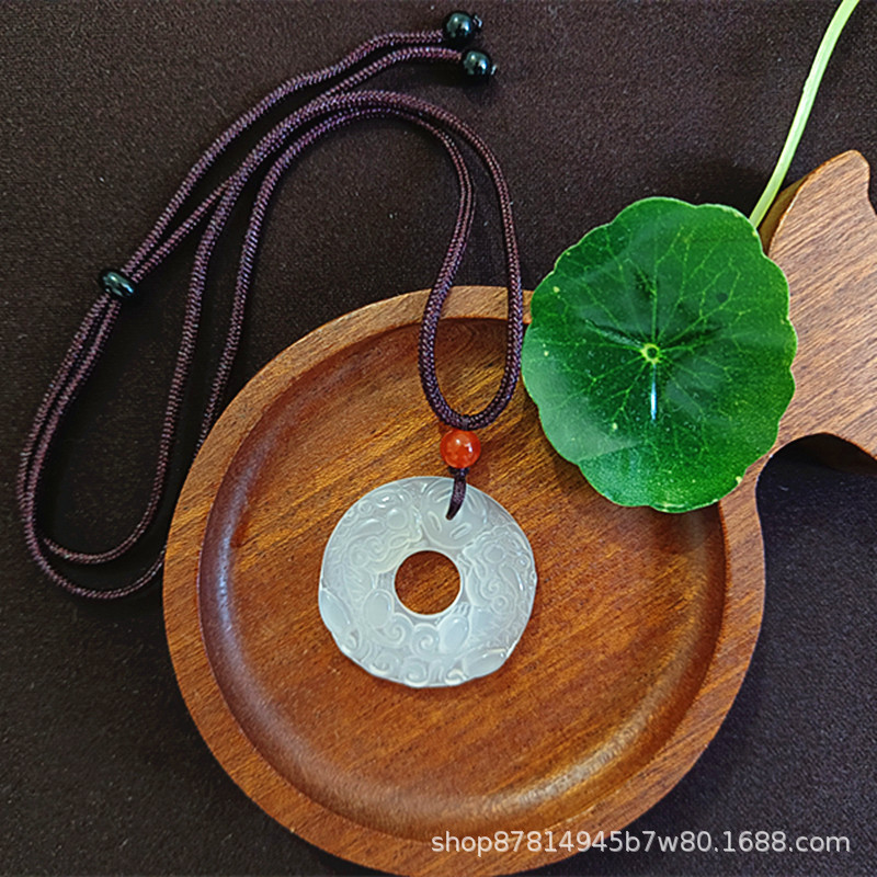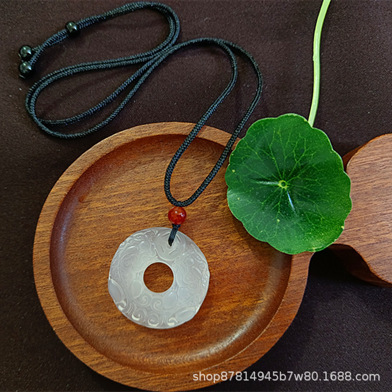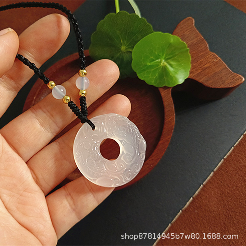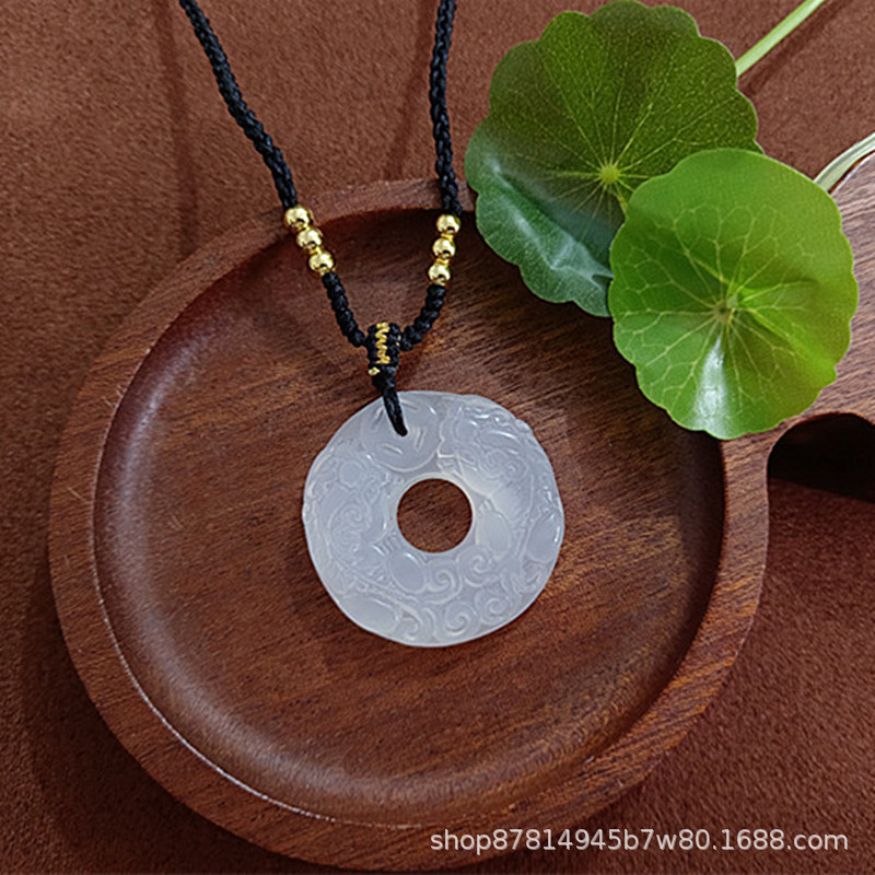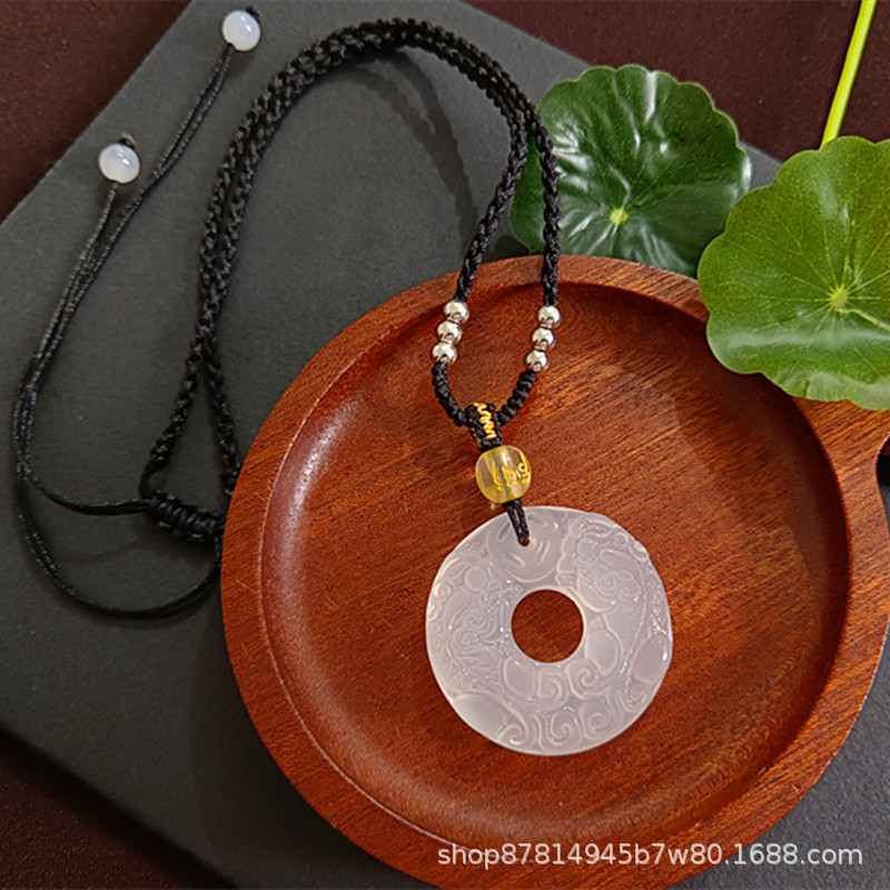 white chalcedony double pixiu safety buckle pendant (with imitation hetian jade rope)