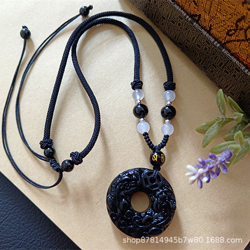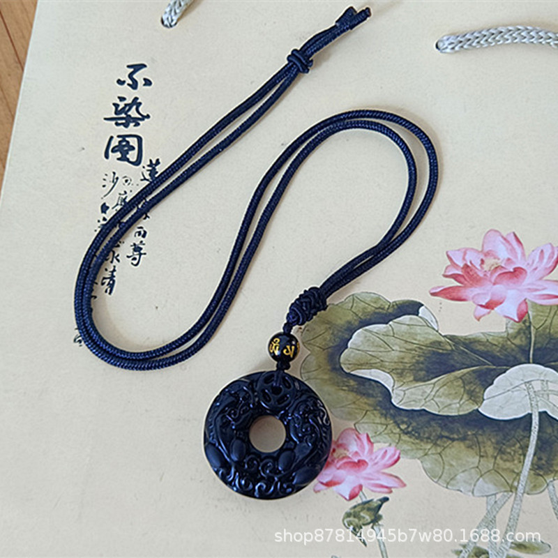 obsidian double pixiu safety buckle pendant (with agate beads black rope)