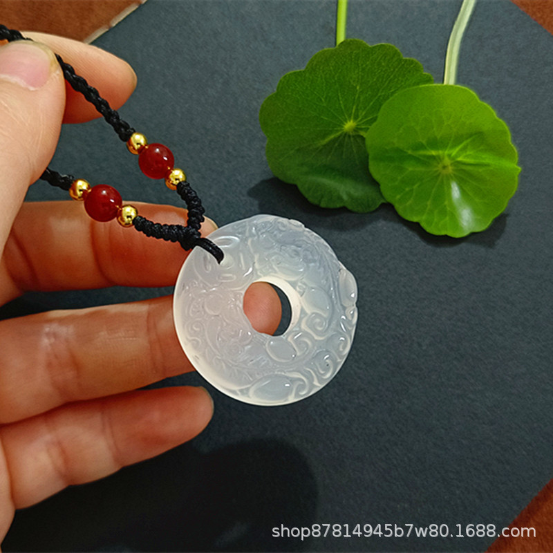 white chalcedony double pixiu safety buckle pendant (with f imitation hetian jade jujube red rope)