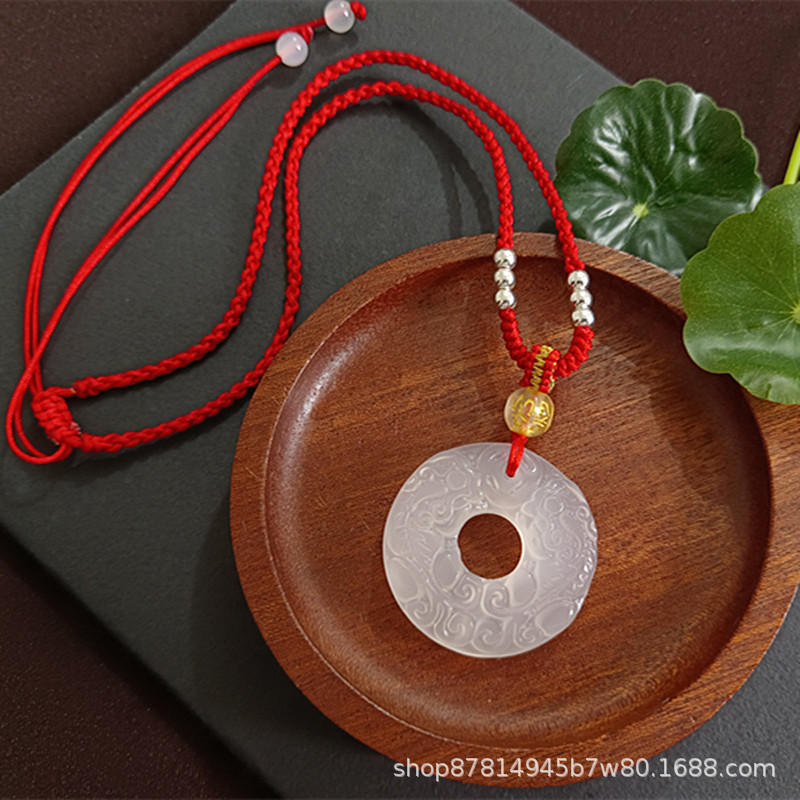 white chalcedony double pixiu peace buckle (with white metal beads red rope)