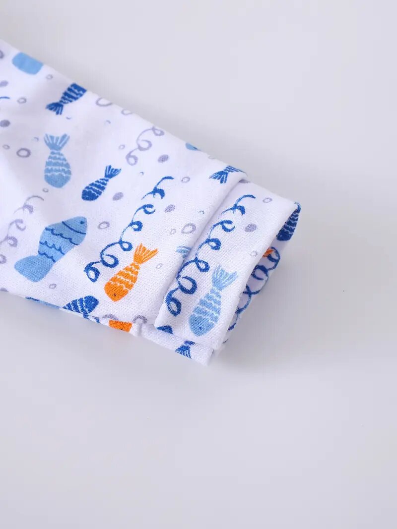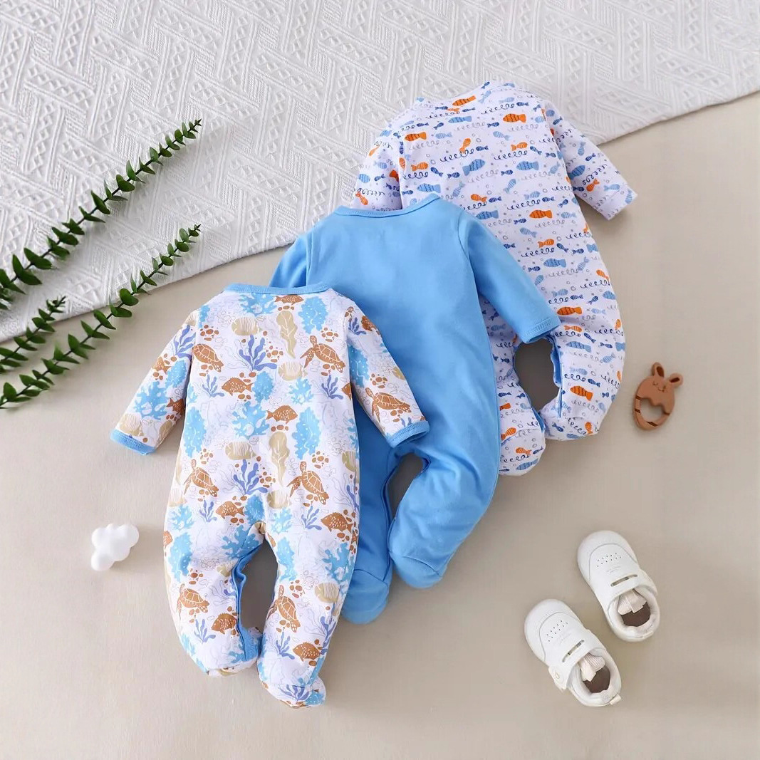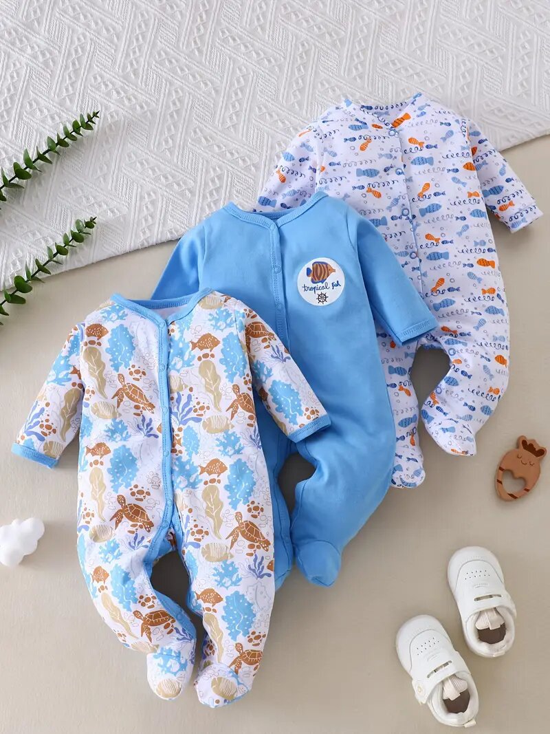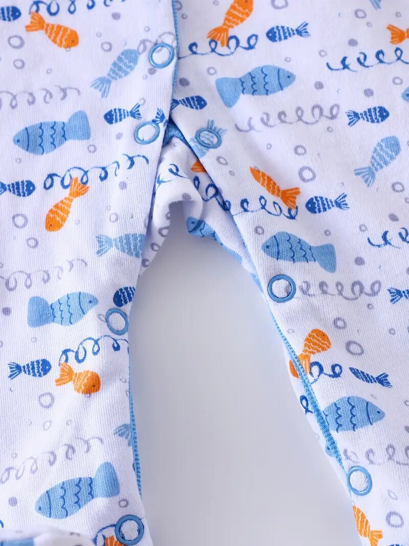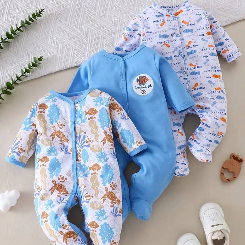 cotton cross-border new arrival european and american 3-piece set baby long climbing newborn long sleeve climbing clothes underwater world fish picture