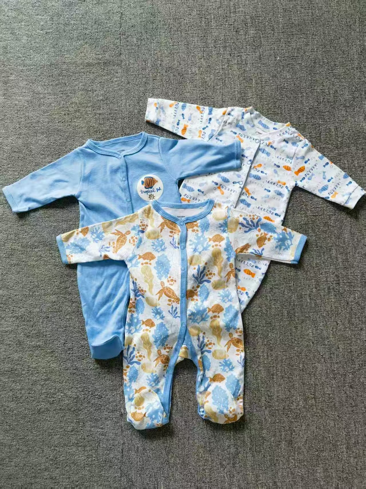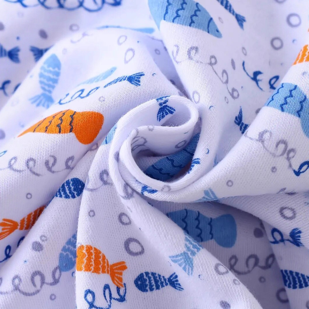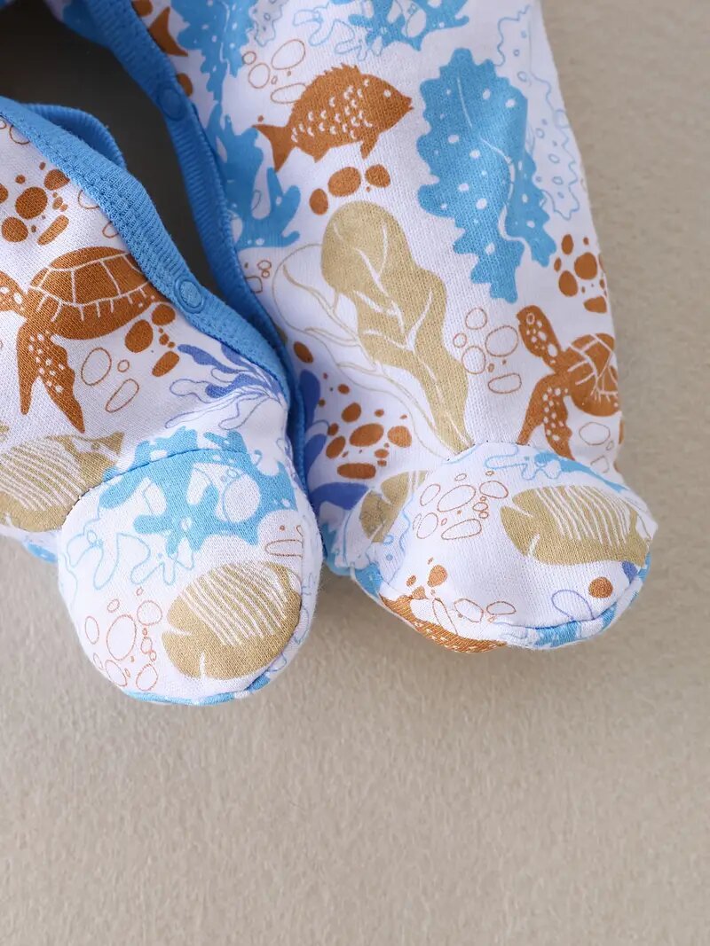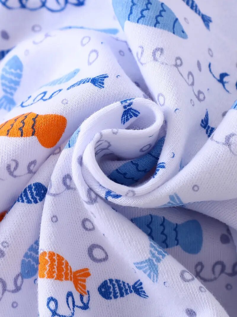 cotton cross-border new arrival european and american 3-piece set baby long climbing newborn long sleeve climbing clothes underwater world fish picture