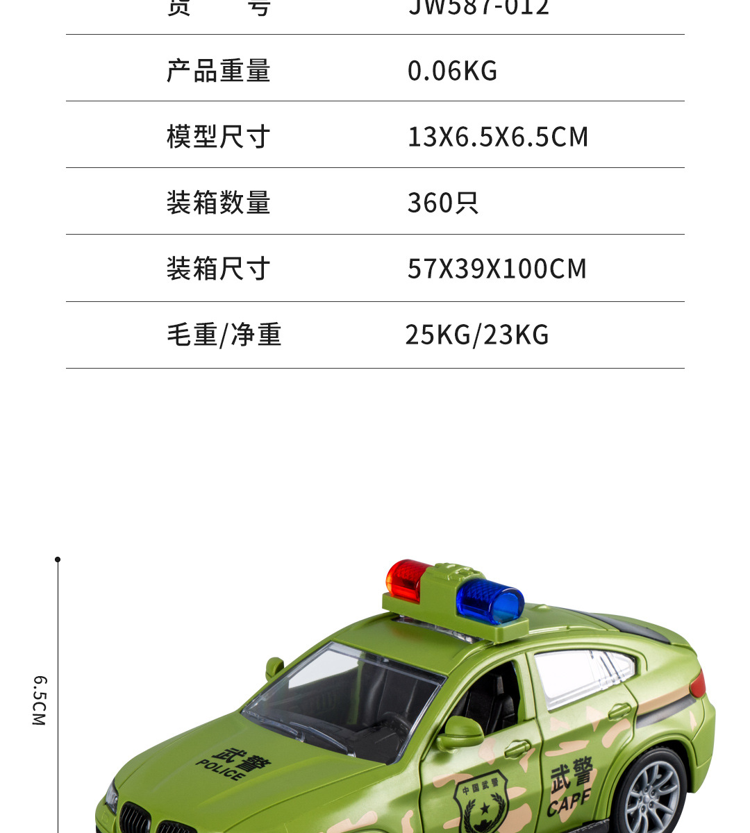 587-012 [green] three-door-military police car