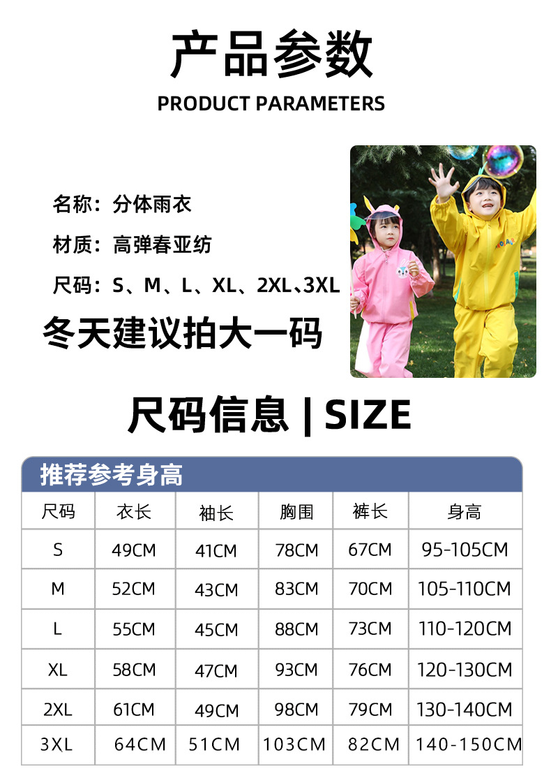 children raincoat rain pants set kindergarten primary school students split poncho boys and girls middle and big children