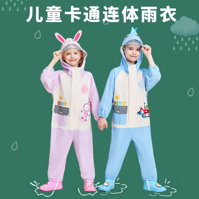 children's jumpsuit cartoon rain gear kindergarten baby boys girls hiking raincoat high elastic spring woven poncho